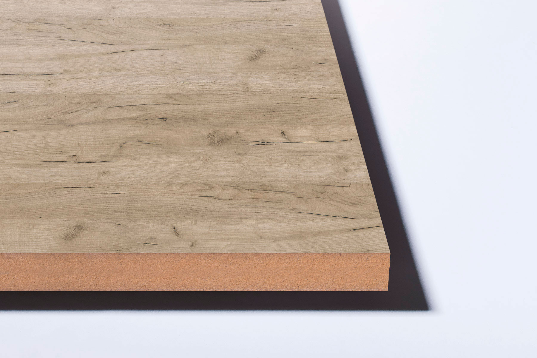 Декоративный слой плиты делает её идеальной для изготовления фасадов, стеновых панелей и элементов мебели.
