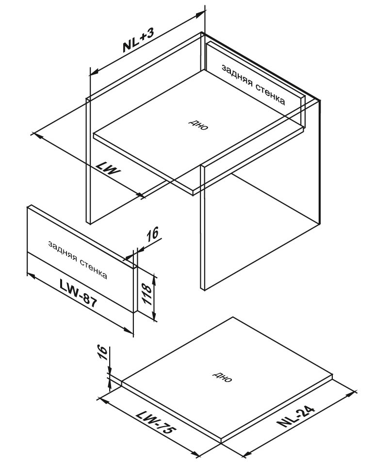 - Тип конструкции направляющих Системы выдвижения с двойными металлическими боковинами