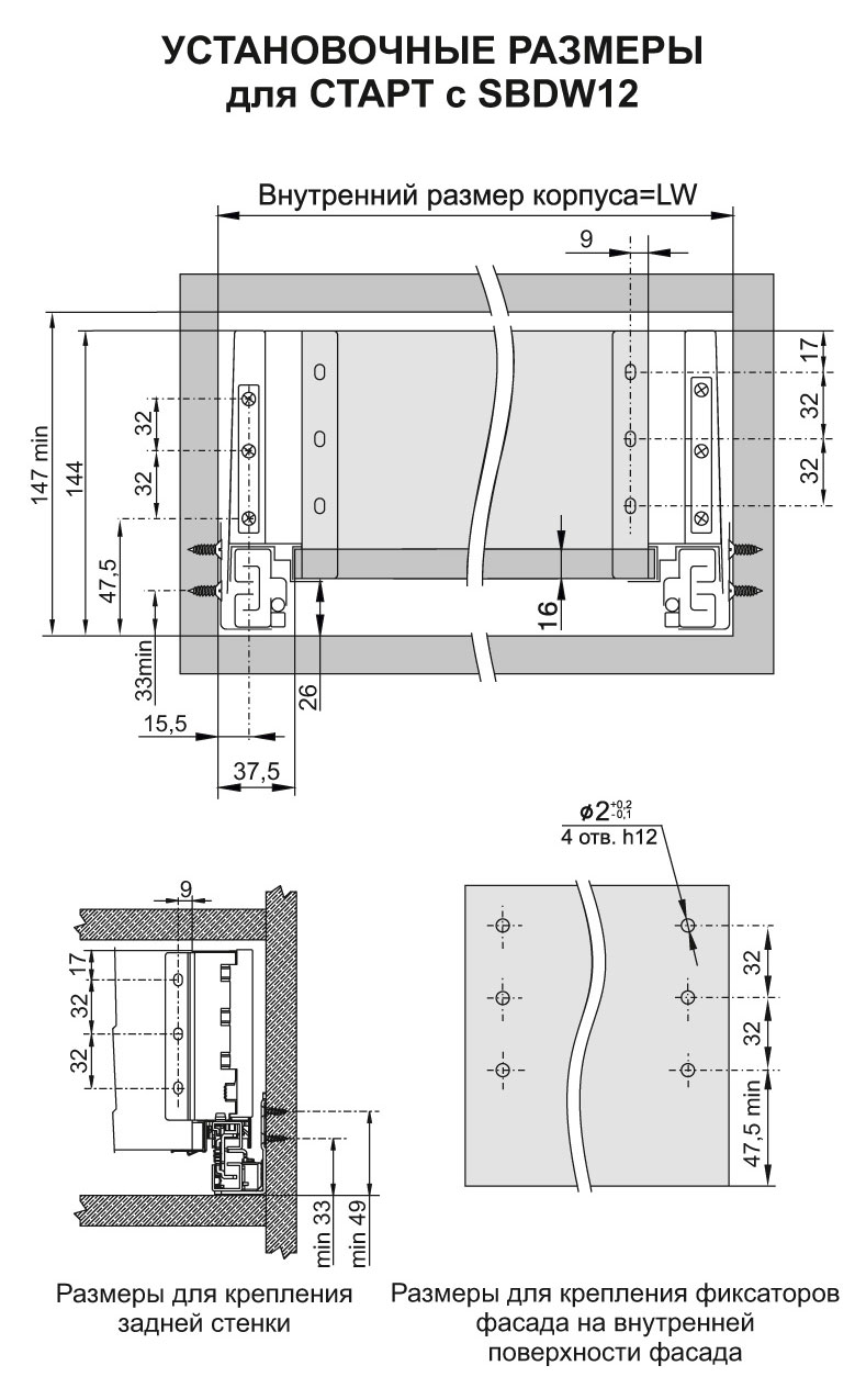 Держатели задней стенки ящика представлены в трёх цветовых решениях: белый, серый и графитовый, что позволяет подобрать держатели, идеально совместимые по цвету с комплектом боковых стенок SBDW12 СТАРТ.