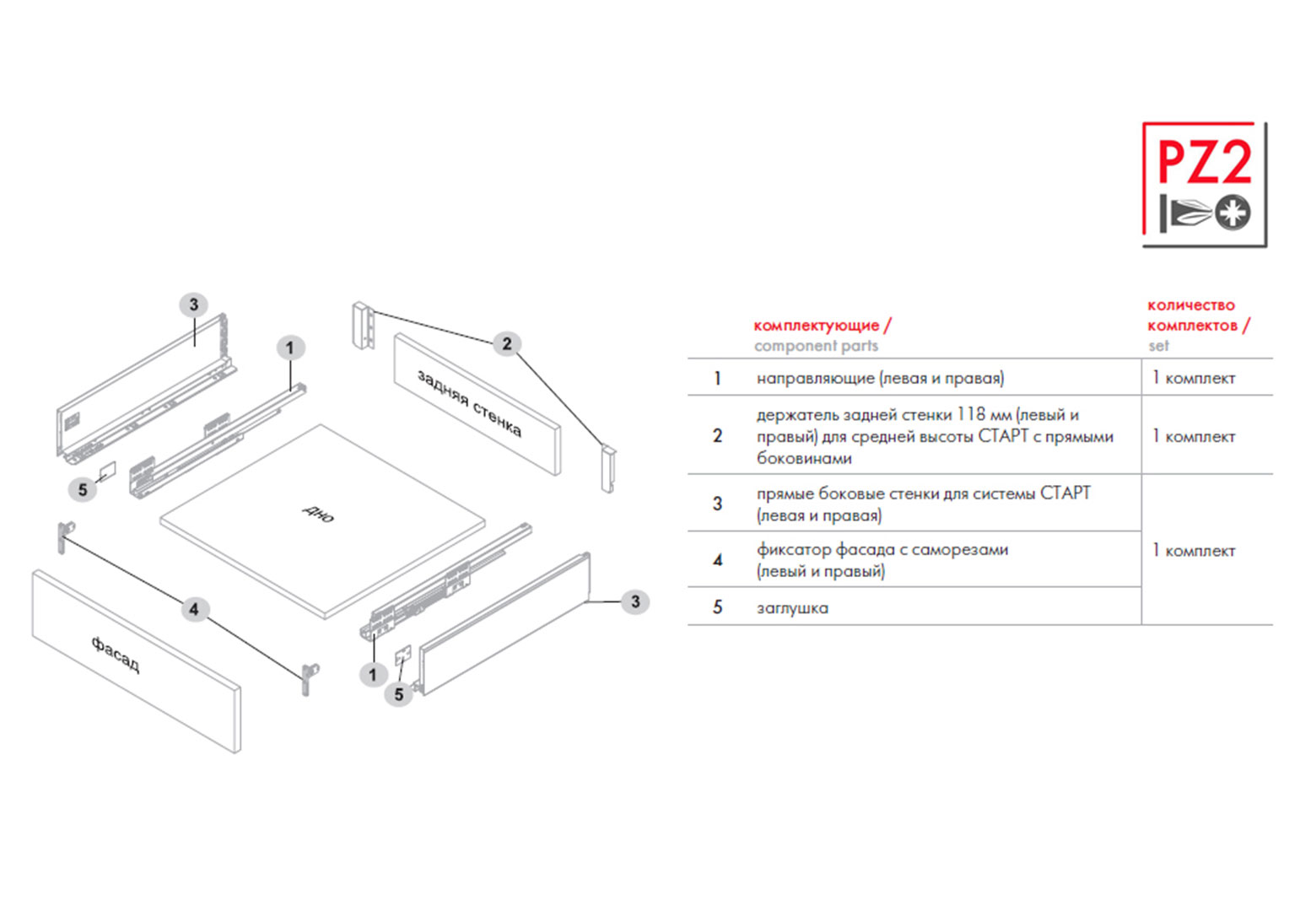 - Линейка Система выдвижения СТАРТ раздельными комплектующими