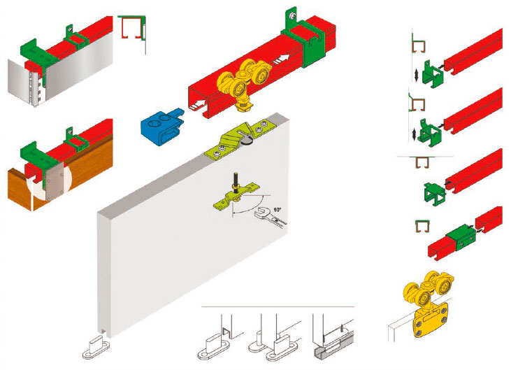 Популярная и очень простая подвесная беспороговая система для раздвижных межкомнатных дверей. Данная система комплектуется роликами для дверей.