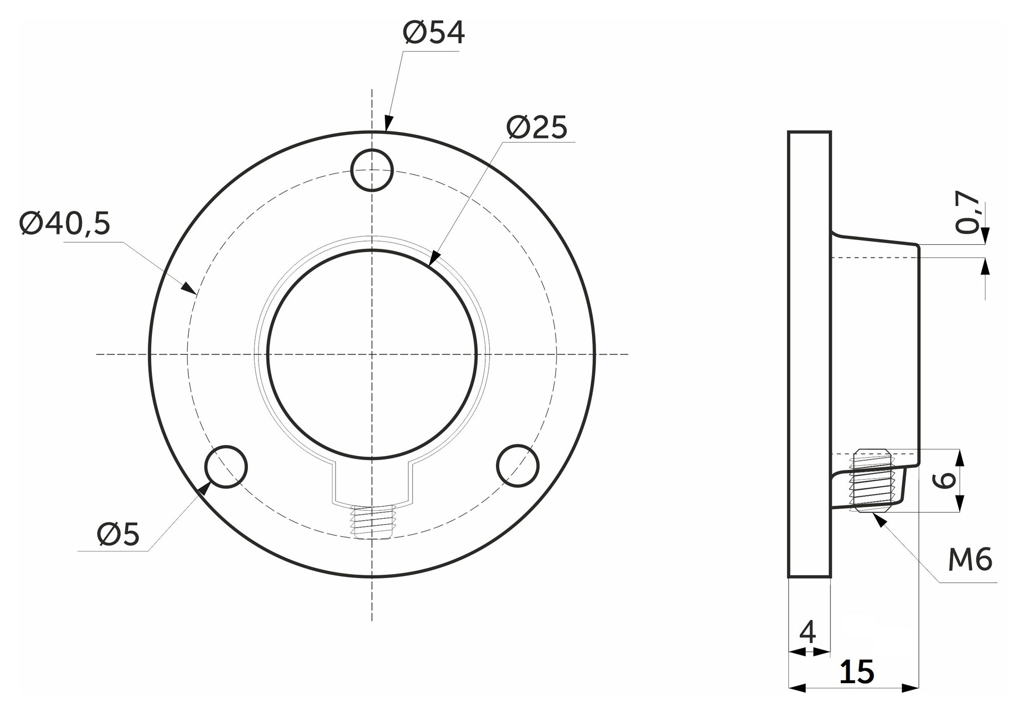 Крепление (розетка) AKS для трубы d25, сталь 510, хром