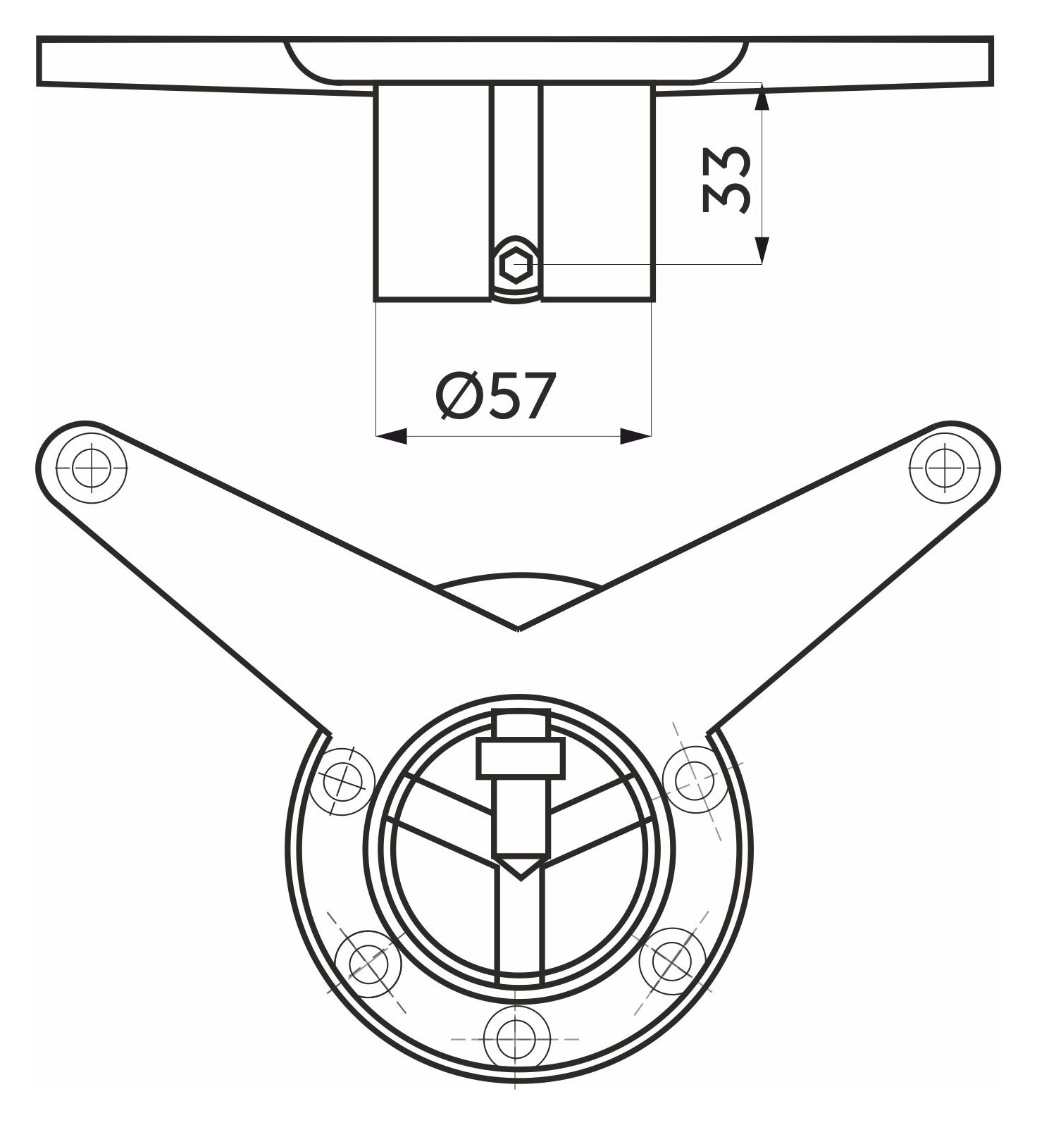 Крепление используется для монтажа (крепления) опоры к столешнице. Дополнительно необходимо приобрести трубу 60/710 и пластиковую заглушку с регуляцией (арт. AKS16070).