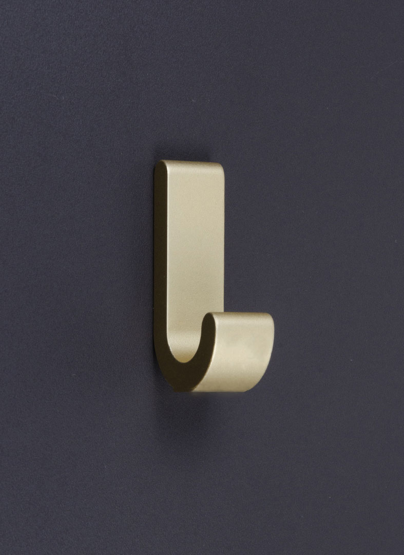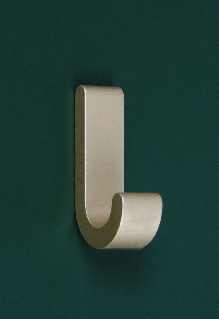 UNO K108 — однорожковый крючок скрытого монтажа из алюминия универсального минималистичного дизайна с мягким изгибом для удобного навешивания и хранения элементов гардероба и бытовых предметов.