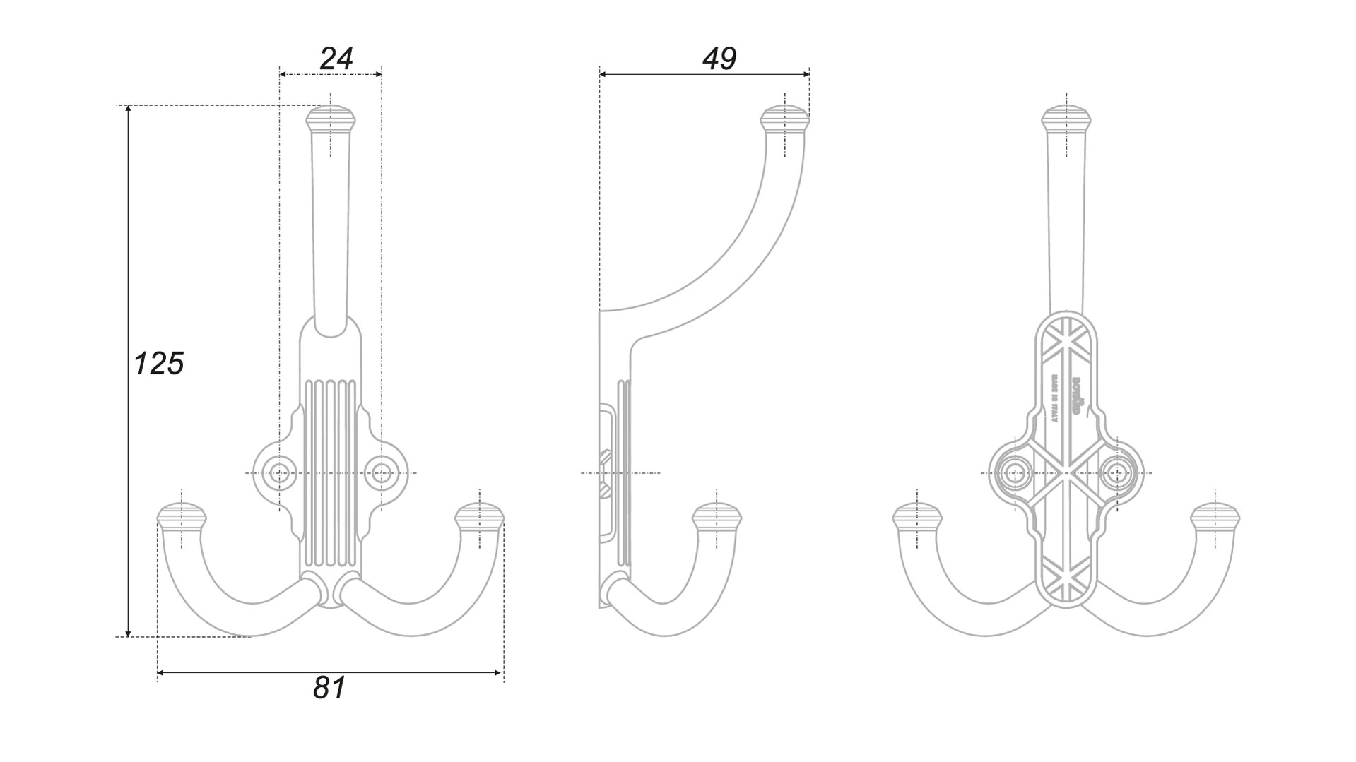 - Комплектация крепежом 1 крючок в полиэтиленовой упаковке, 2 самореза 4x25