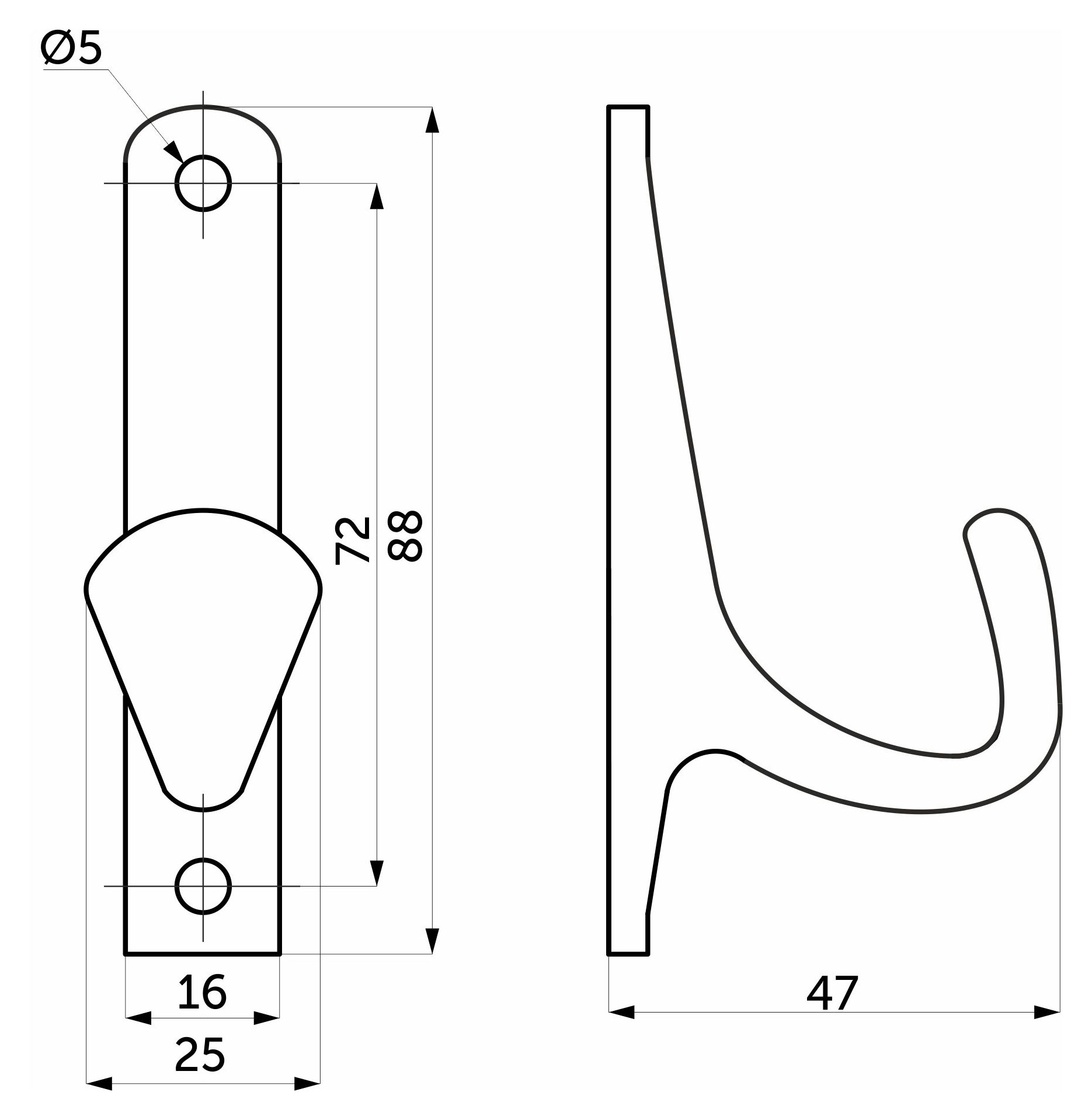 - Тип Крючок однорожковый