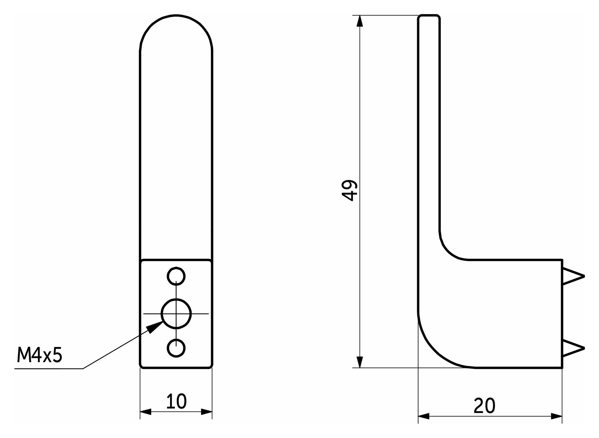 Крепление к поверхности с помощью винтов. Имеет pin, который защищает крючок от прокручивания вокруг своей оси.