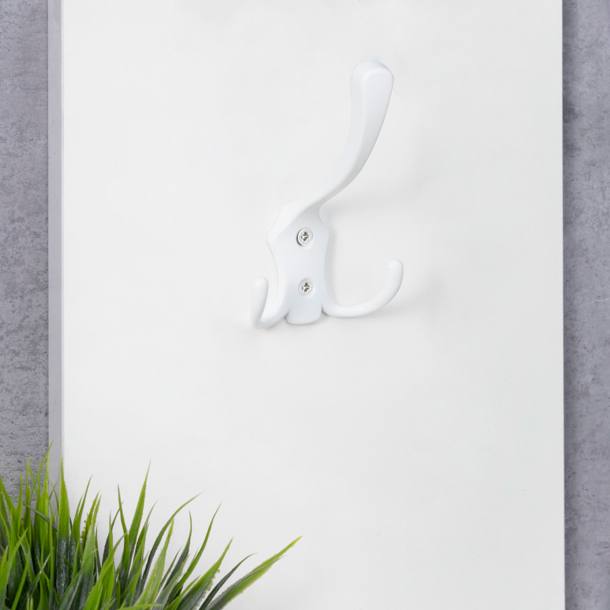 Трехрожковый металлический настенный крючок. Крючок может использоваться как в гардеробных, так и ванной комнате. Крючок имеет стильный минималистичный дизайн, который подойдет практически к любому стилю интерьера.
