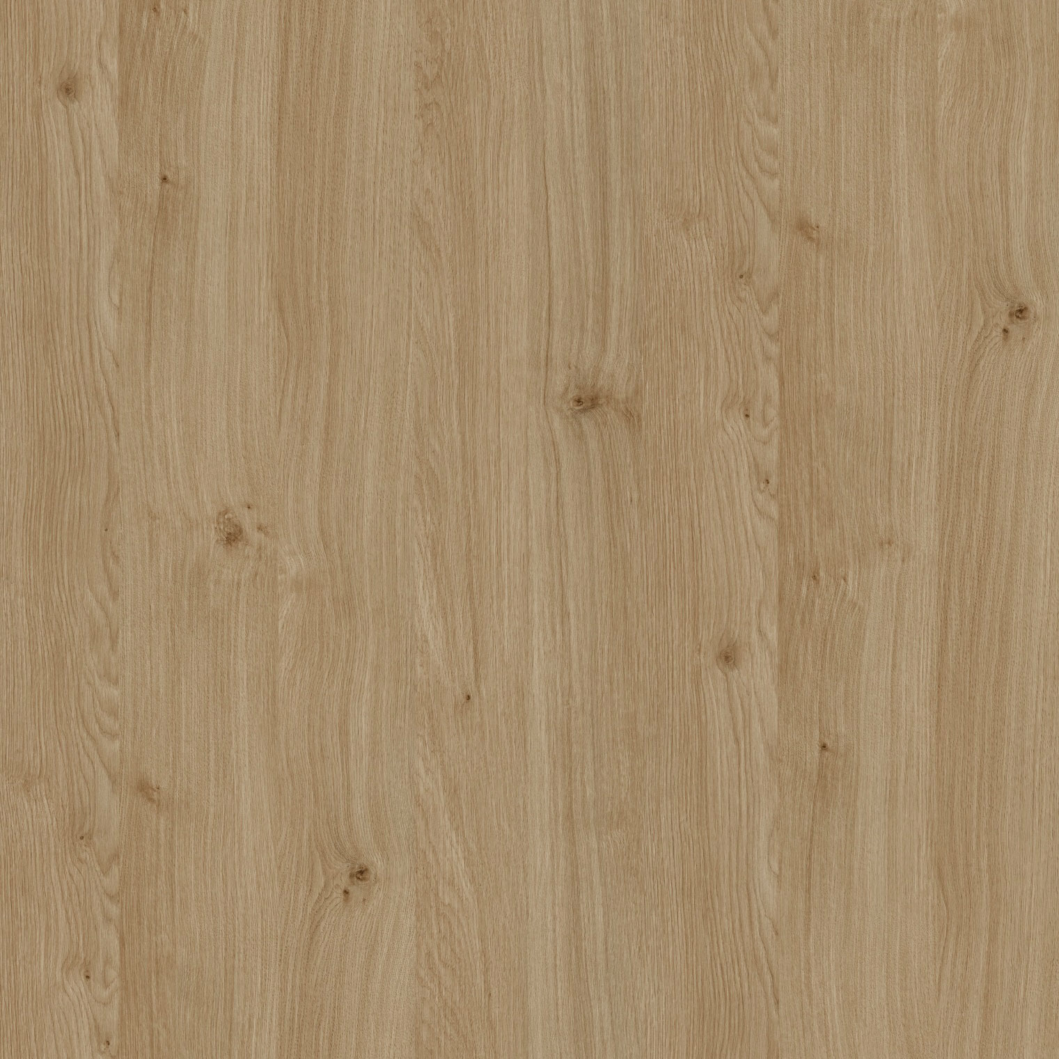 - Декор имитирует древесину дуба с заметными переходами тонов — от светло-коричневого до средне-коричневого, с хорошо прорисованными волокнами и сучьями.