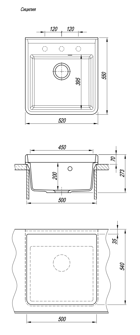 - Глубина мойки/раковины, мм 273
