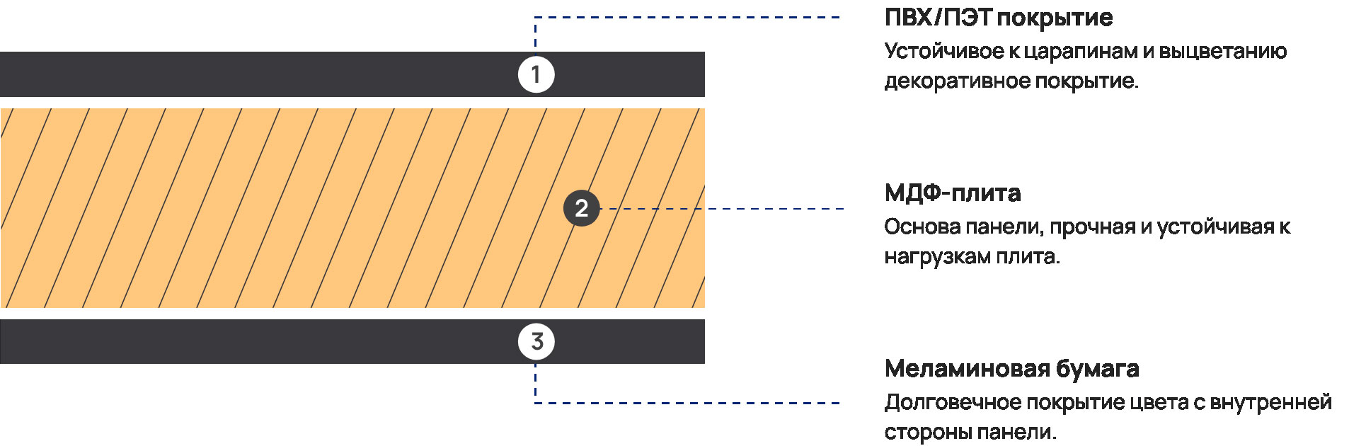 - МДФ-плита. Основа панели, прочная и устойчивая к нагрузкам.