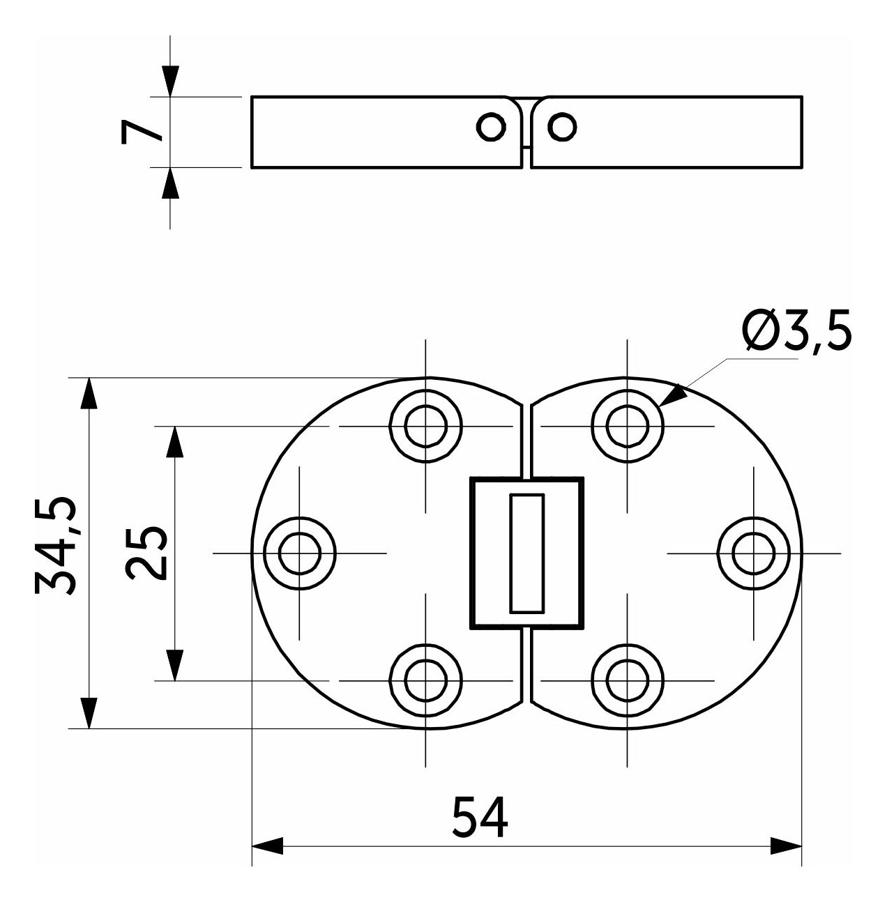 Мебельная петля секретерная AKS, металл/металл D35 мм, плоская, хром