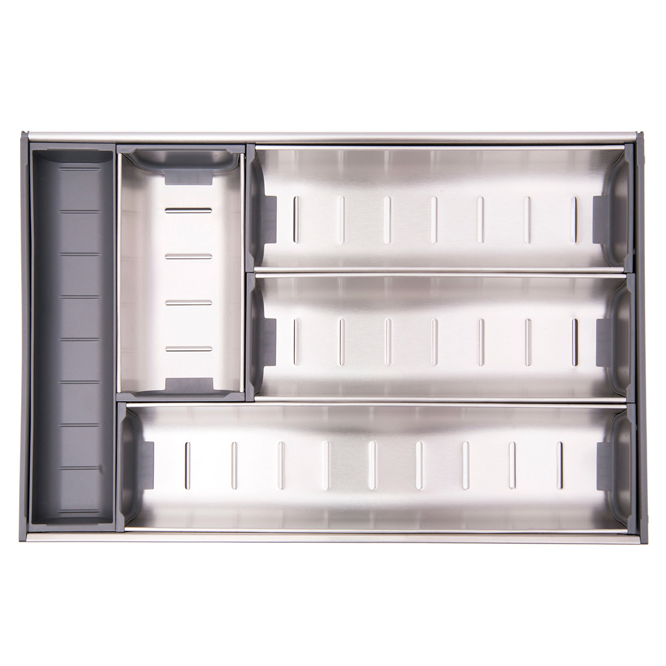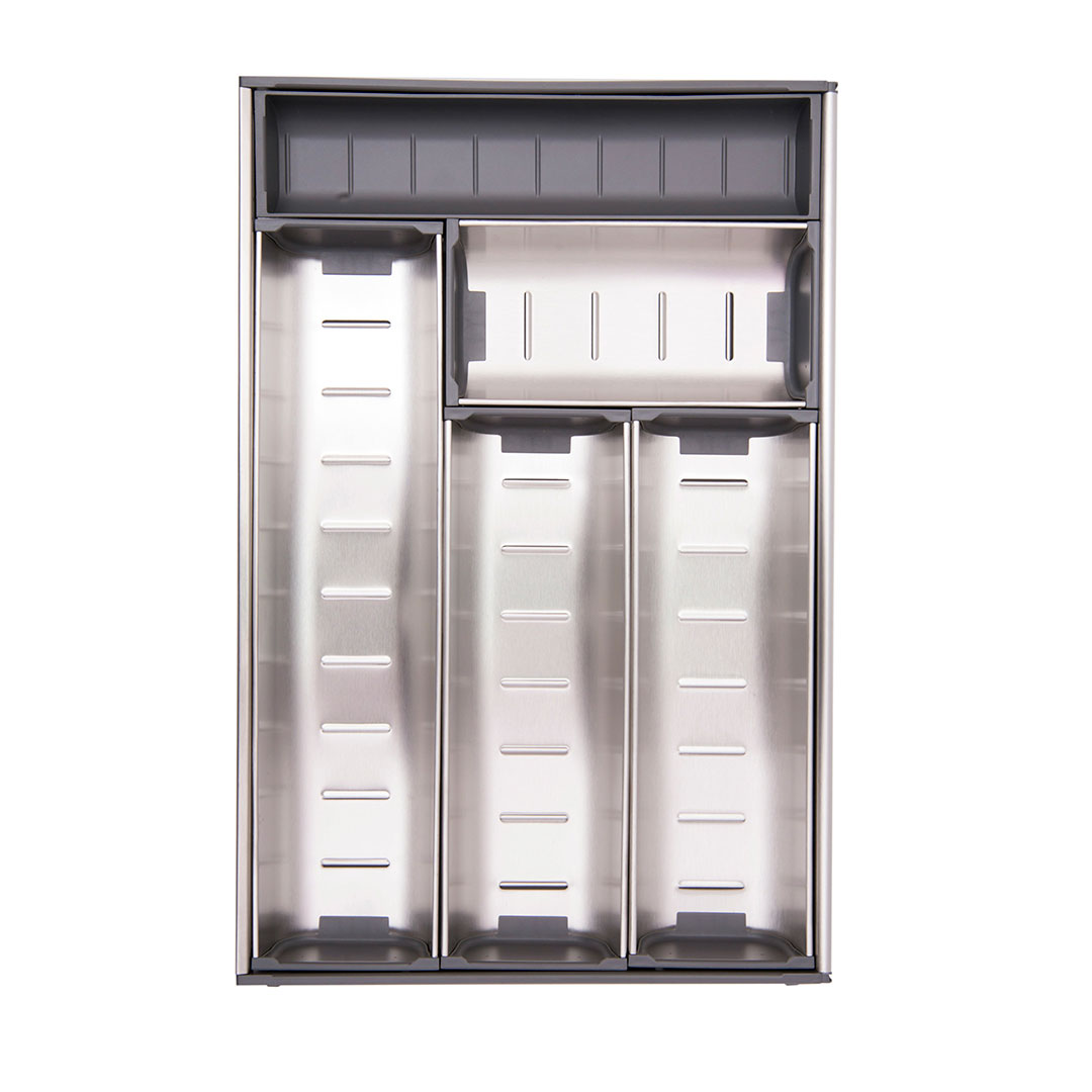 Сборные поддоны из нержавеющей стали позволяют организовать внутреннее пространство выдвижных ящиков.