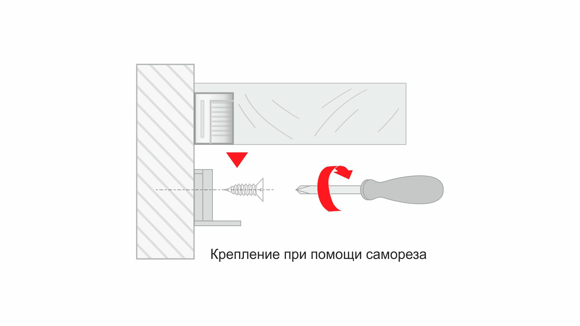 Крепёж подбирается индивидуально в зависимости от материалов и толщины полки и приобретается отдельно.
