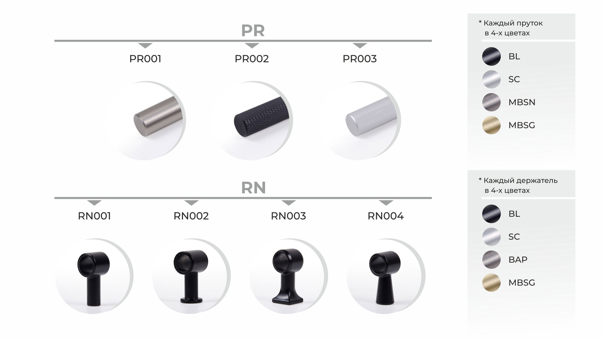 CUSTOMIZE – это серия кастомных ручек, которые клиент создает сам под свой авторский мебельный проект. 4 дизайна держателя мебельной ручки, 3 дизайна прутка, множество длин, трендовые оттенки – всё это открывает огромный простор для стильных творческих экспериментов.