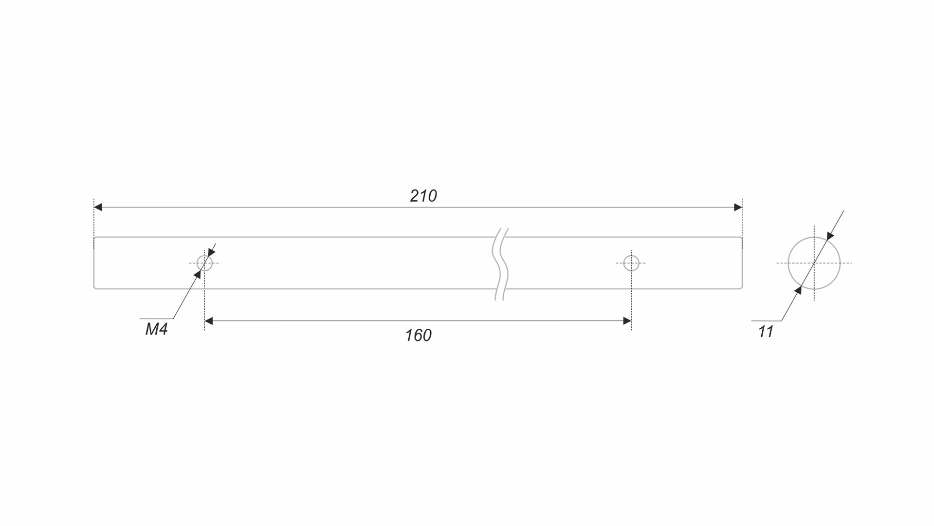 ROMB PR002 – пруток диаметром 11 мм с аккуратной круговой фрезеровкой края.