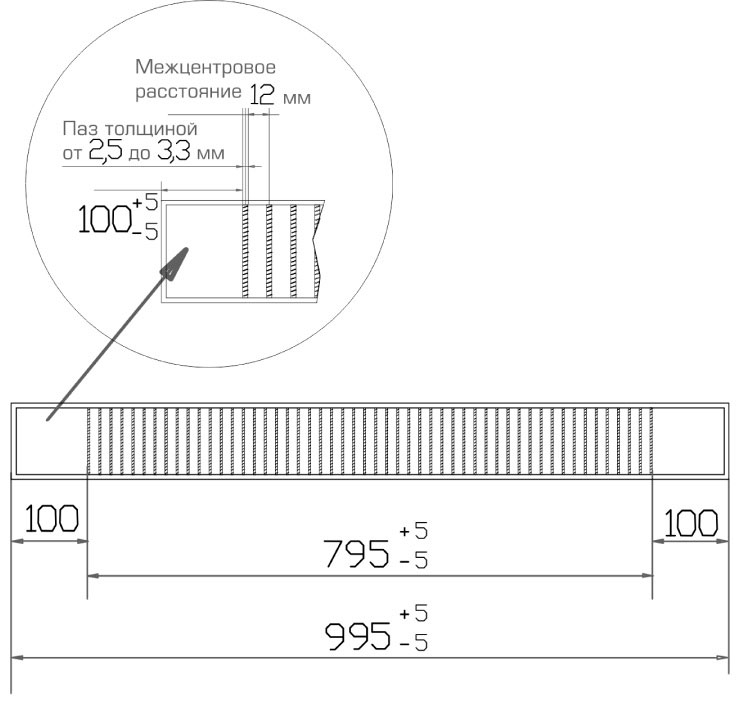 Радиусный элемент высотой 100 мм, длиной 995 мм. Профиль может принимать любую форму, что весьма актуально для кухонных тумб с изгибами и плавными закруглениями.