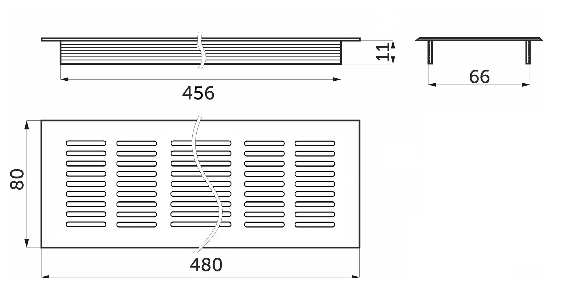 Решётка вентиляционная AKS 480x80, алюминий, Чёрная