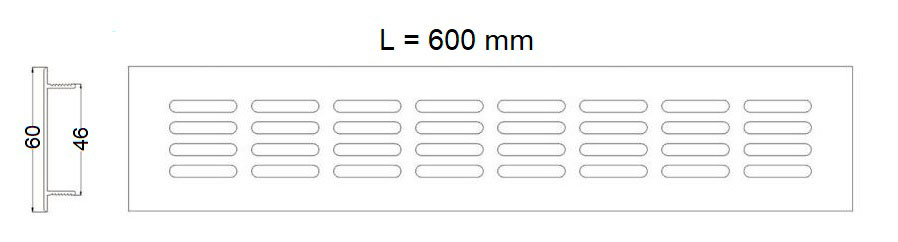 Решётка вентиляционная AKS 600x60, алюминий, Серебро