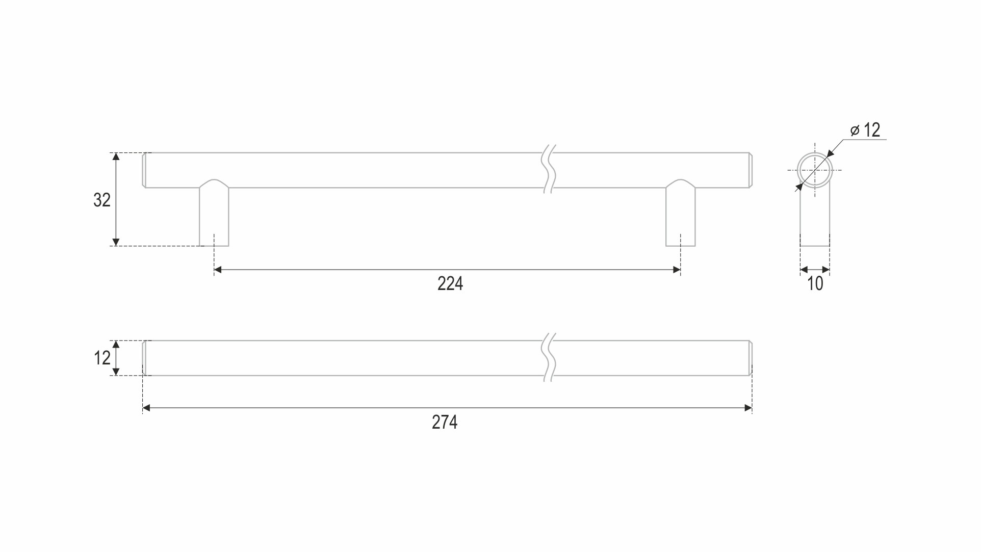 Модель предложена в широком диапазоне длин и покрытий. Ручки в размерах 960, 1152 мм отлично смотрятся на высоких вертикальных распашных фасадах, а варианты в средних длинах подходят и для вертикального, и для горизонтального расположения.