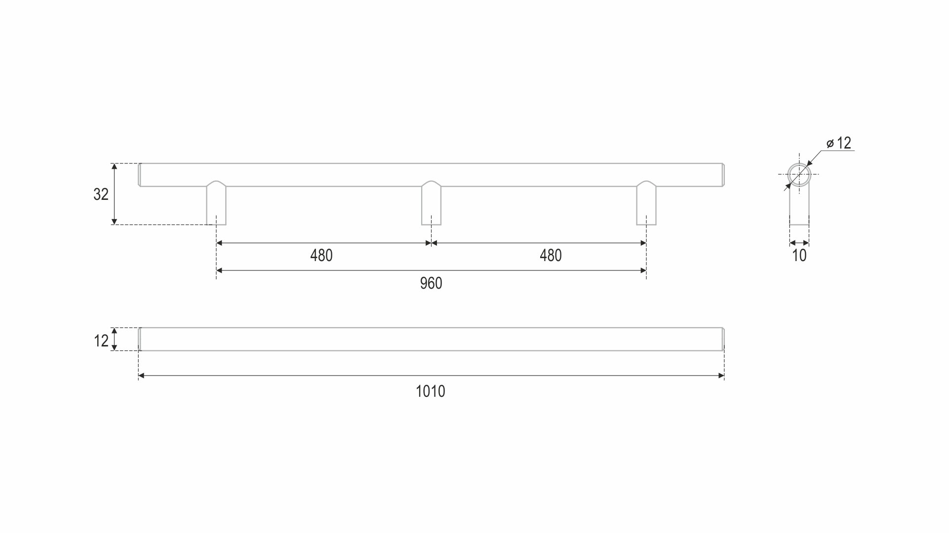 Модель предложена в широком диапазоне длин и покрытий. Ручки в размерах 960, 1152 мм отлично смотрятся на высоких вертикальных распашных фасадах, а варианты в средних длинах подходят и для вертикального, и для горизонтального расположения.