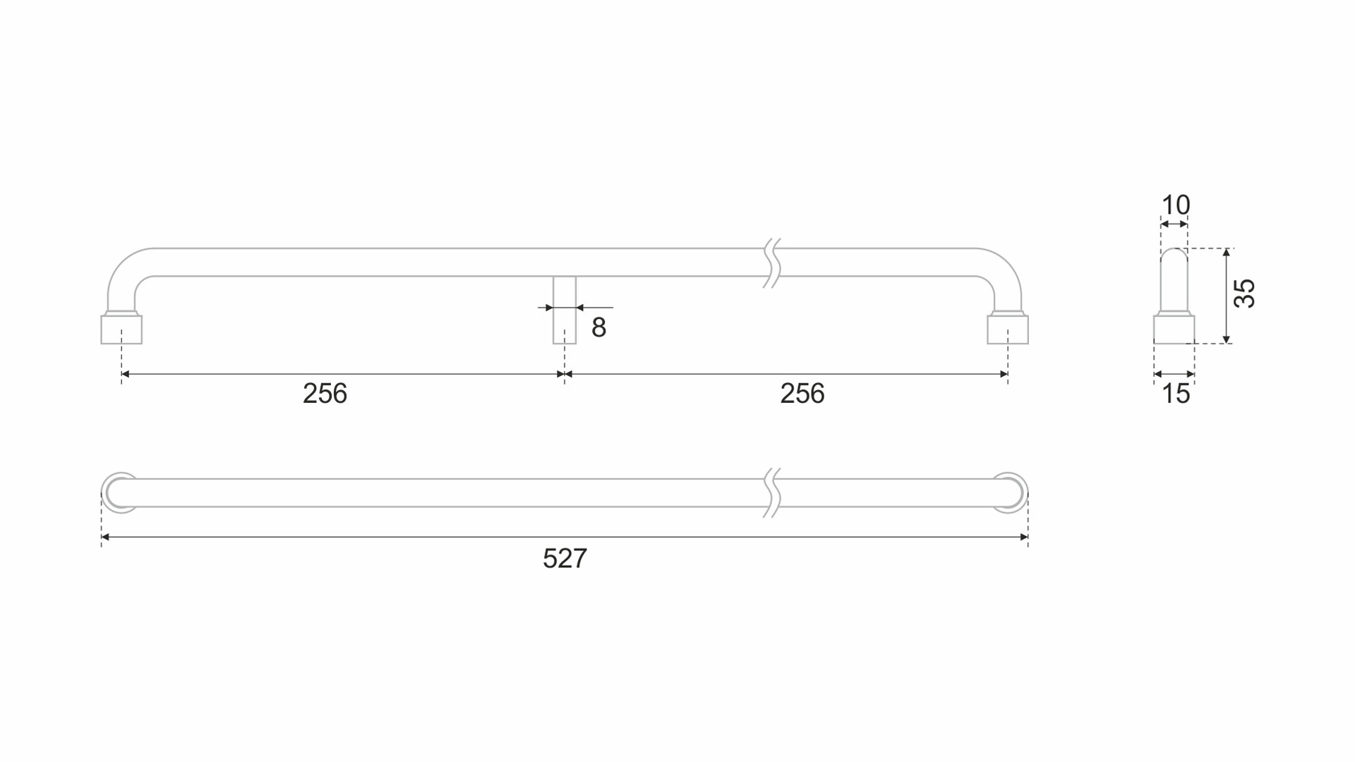 Для установки CONTUR необходимо надеть наконечники на ручку. Ручки размером 512 мм и 960 мм имеют дополнительную предустановленную и фиксированную центральную опору без наконечника.