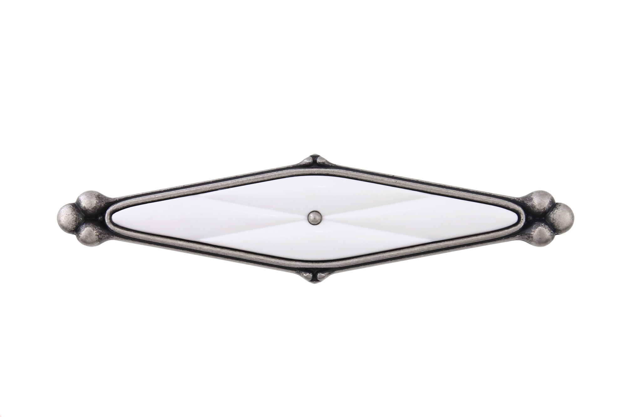 Модель DIVA RS118 – утонченная ручка, созданная по всем канонам стиля Romantica. Изящный ромб с округлыми контурами, нежная вставка молочного оттенка и искусное покрытие, имитирующее состаренный металл - всё это навевает мысли об очаровании антикварной мебели.