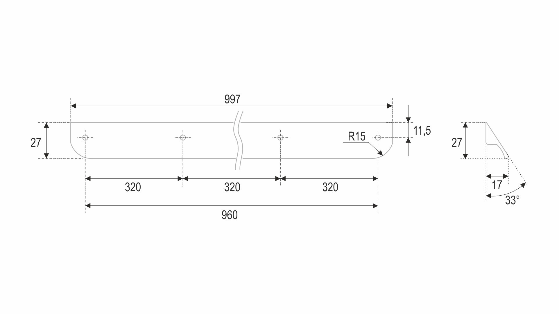 ТИК RS156 — лаконичная ручка-скоба, которая выглядит как торцевая. Предназначена для установки на фасады толщиной от 16 мм.