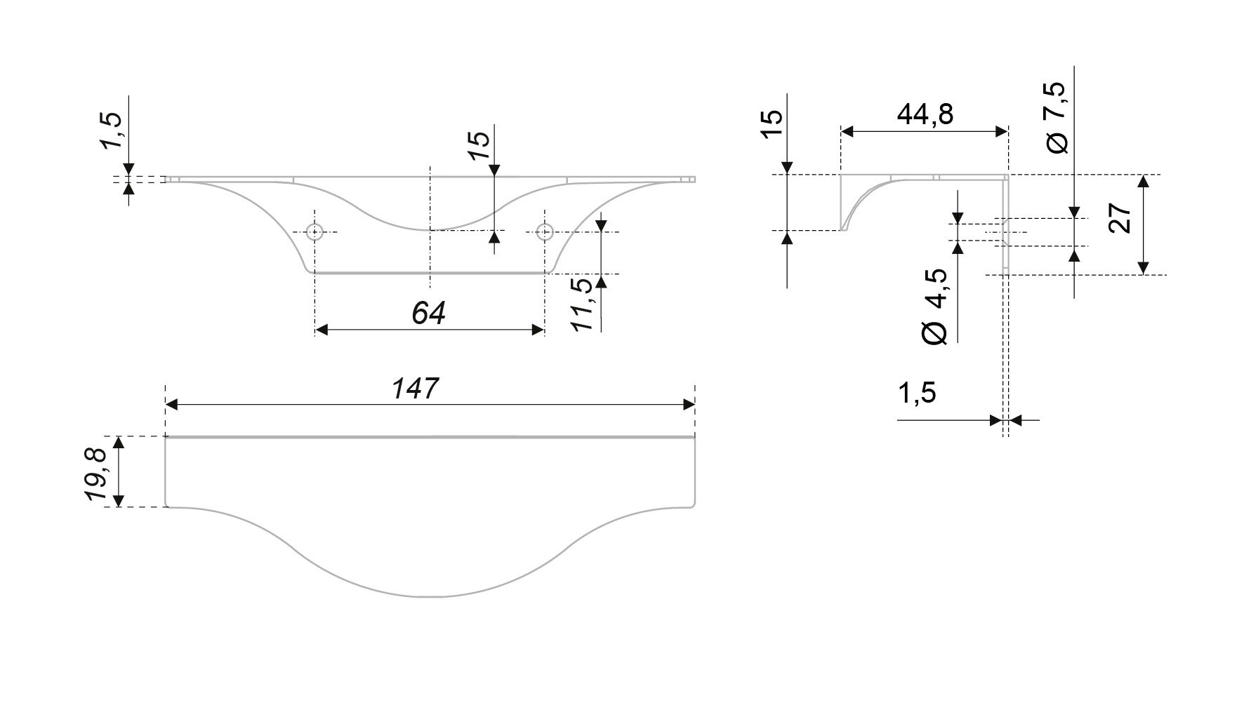 Модель крепится на фасады толщиной 16-18 мм методом наложения и фиксируется при помощи саморезов. Саморезы не входят в комплект и приобретаются отдельно. Размер саморезов необходимо подобрать самостоятельно, исходя из толщины фасада, на который будет устанавливаться ручка.