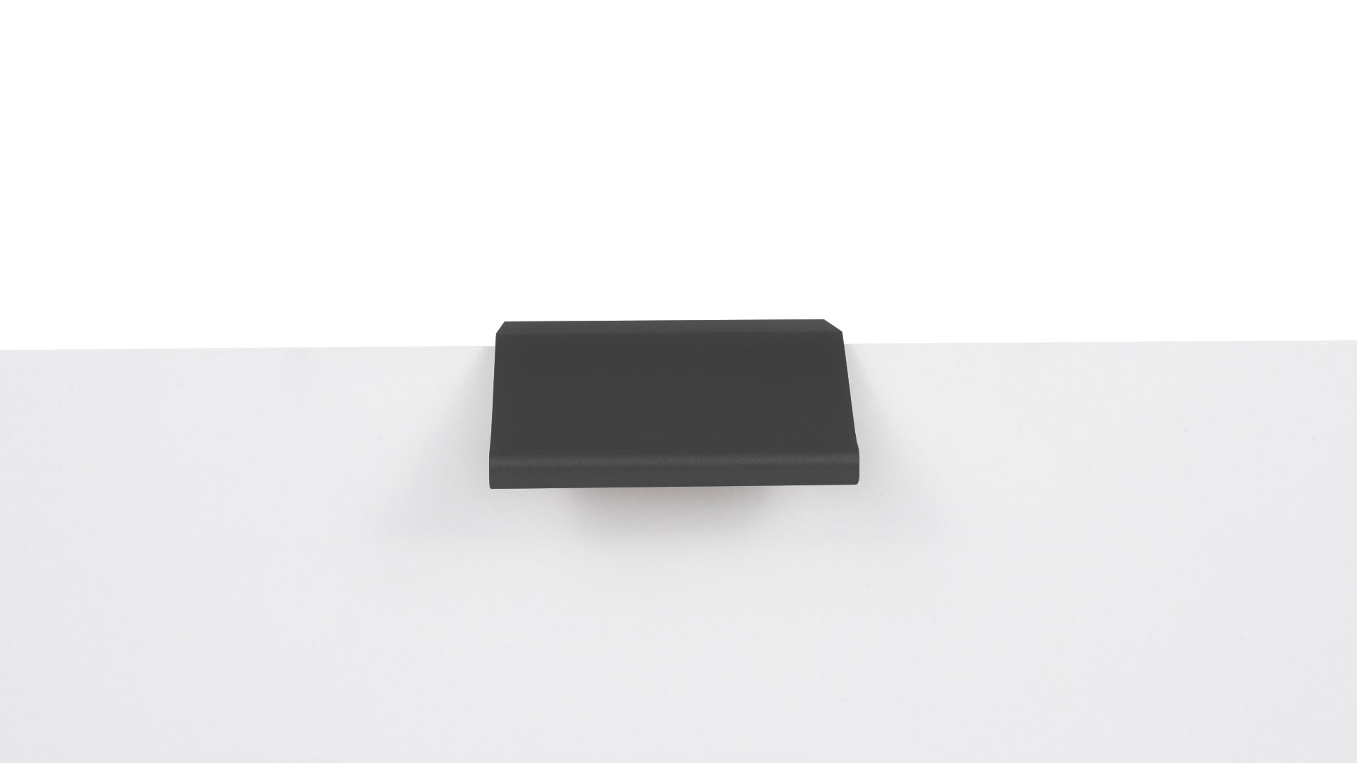 METRICA RT112 — торцевая ручка из алюминия, с геометричным выступом и рифлением в зоне захвата для эргономичного использования. Устанавливается наложением, подходит для фасадов толщиной от 16 мм до 20 мм.