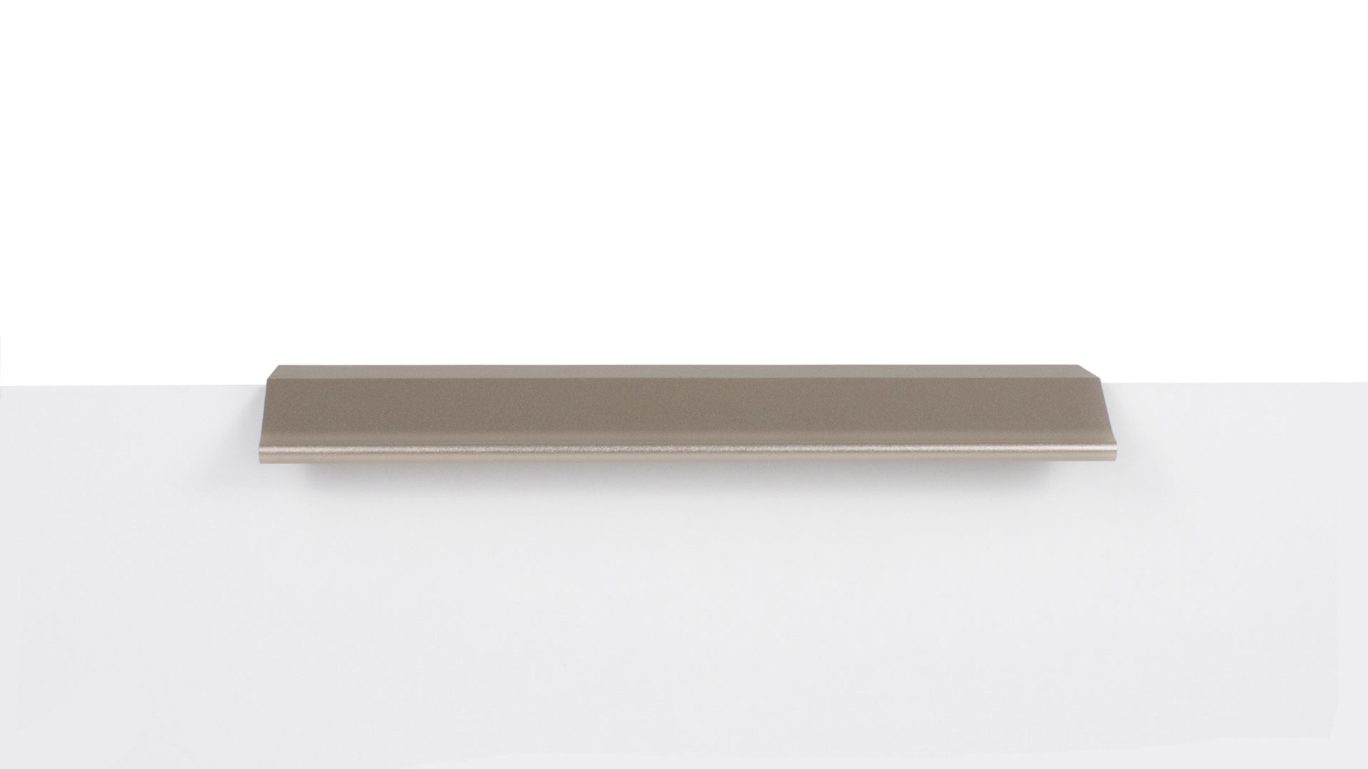 METRICA RT112 — торцевая ручка из алюминия, с геометричным выступом и рифлением в зоне захвата для эргономичного использования. Устанавливается наложением, подходит для фасадов толщиной от 16 мм до 20 мм.