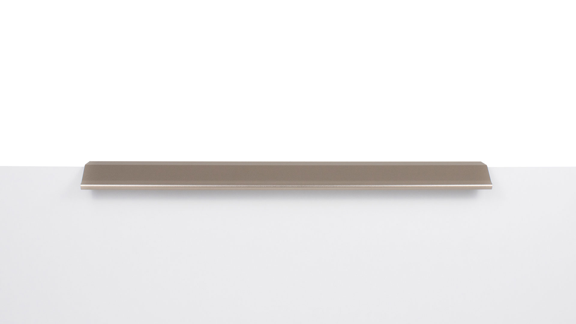 METRICA RT112 — торцевая ручка из алюминия, с геометричным выступом и рифлением в зоне захвата для эргономичного использования. Устанавливается наложением, подходит для фасадов толщиной от 16 мм до 20 мм.