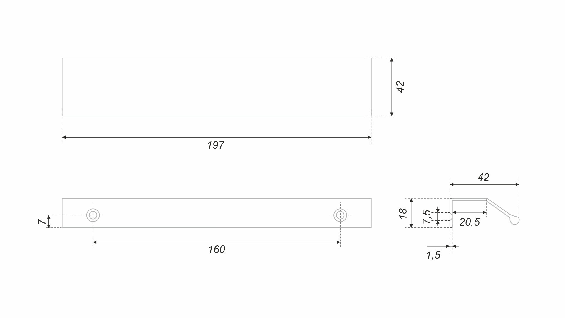 METRICA RT112 — торцевая ручка из алюминия, с геометричным выступом и рифлением в зоне захвата для эргономичного использования. Устанавливается наложением, подходит для фасадов толщиной от 16 мм до 20 мм.