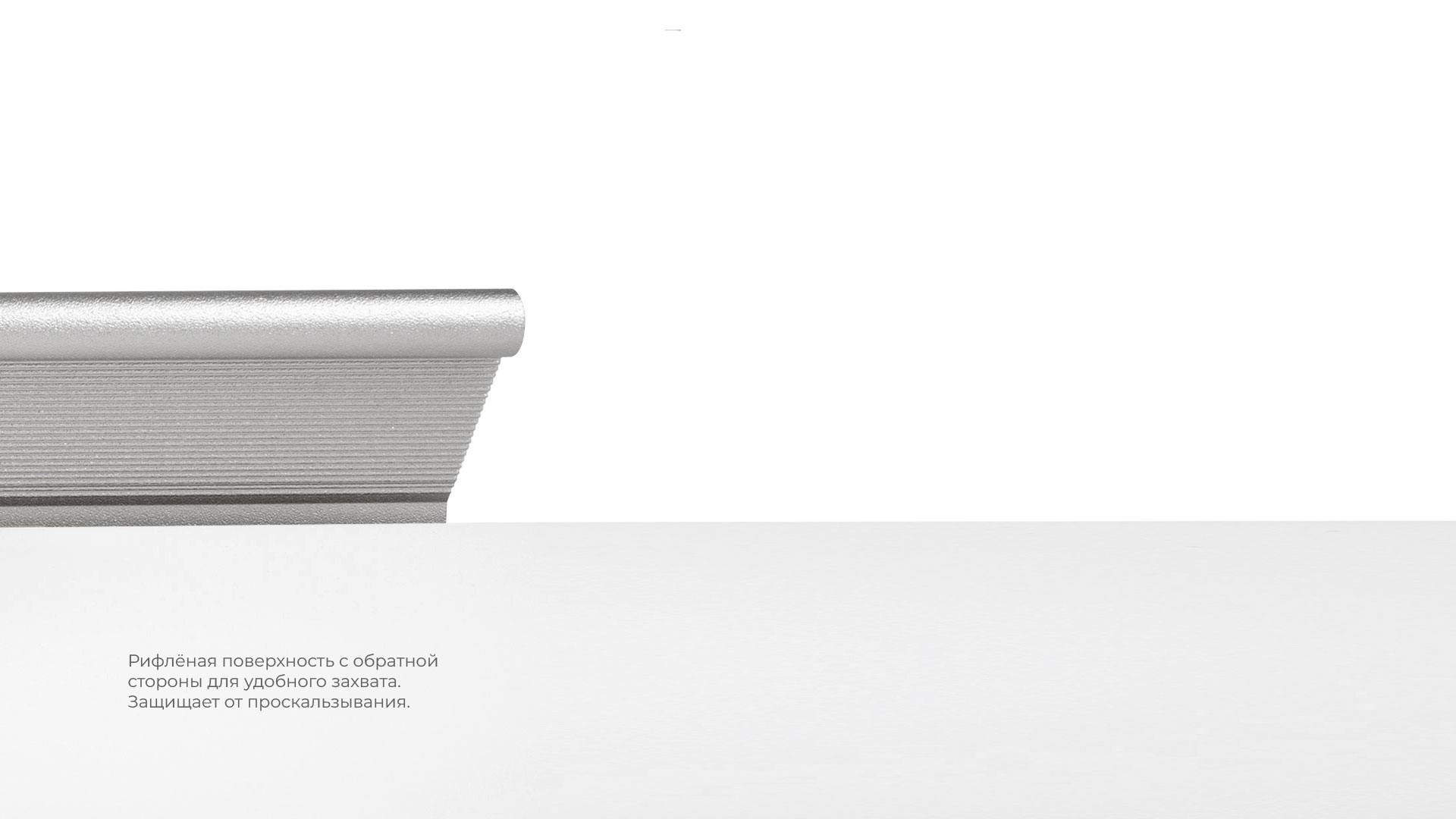 METRICA RT112 — торцевая ручка из алюминия, с геометричным выступом и рифлением в зоне захвата для эргономичного использования. Устанавливается наложением, подходит для фасадов толщиной от 16 мм до 20 мм.
