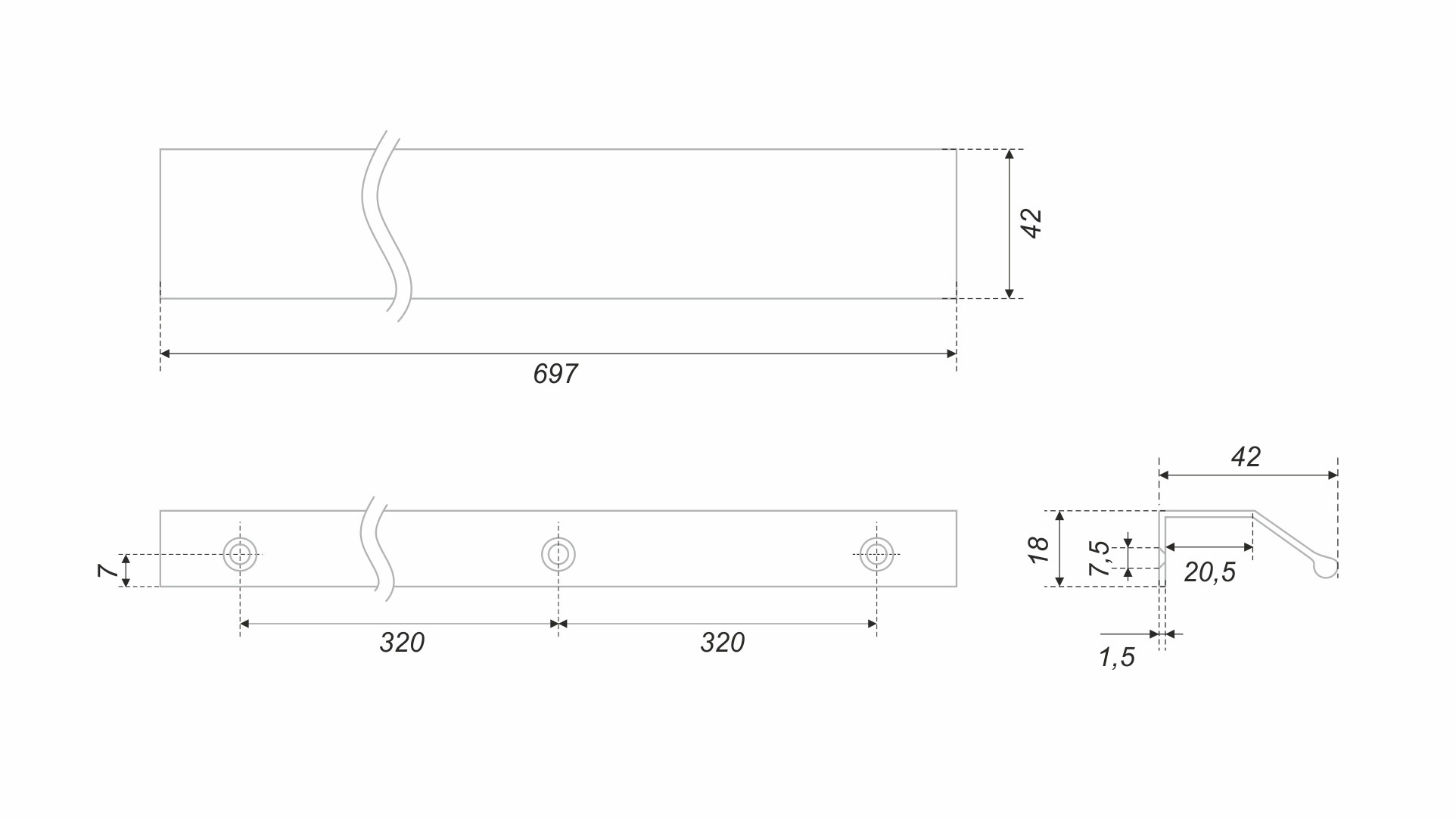 Модель крепится на фасад наложением и фиксируется при помощи саморезов. Саморезы не входят в комплект и приобретаются отдельно. Размер саморезов необходимо подобрать самостоятельно, исходя из толщины фасада, на который будет устанавливаться ручка.
