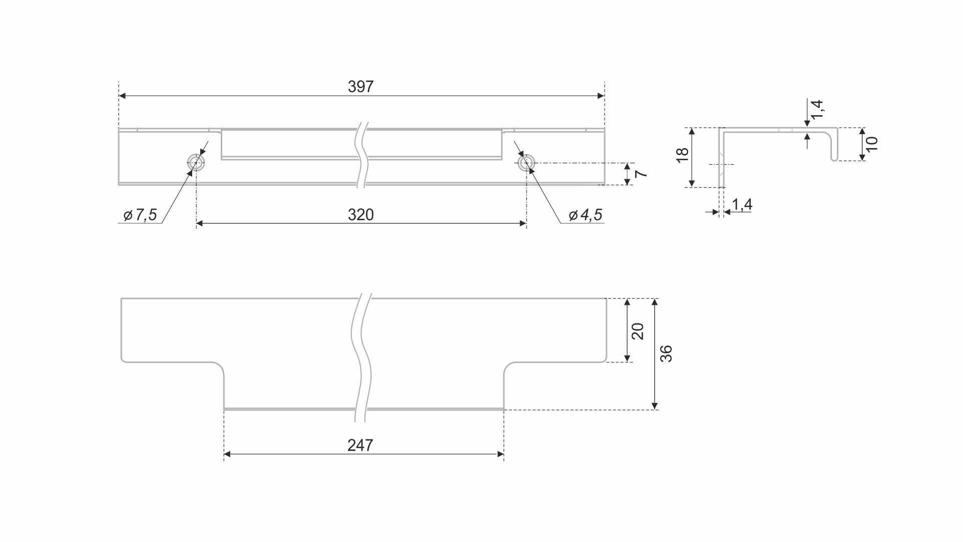 Ручка имеет богатую палитру цветовых решений и разнообразие длин. В зависимости от длины, модель допускает размещение двумя способами — «в размер» фасада и по центру широких фасадов (как большой «язычок»).