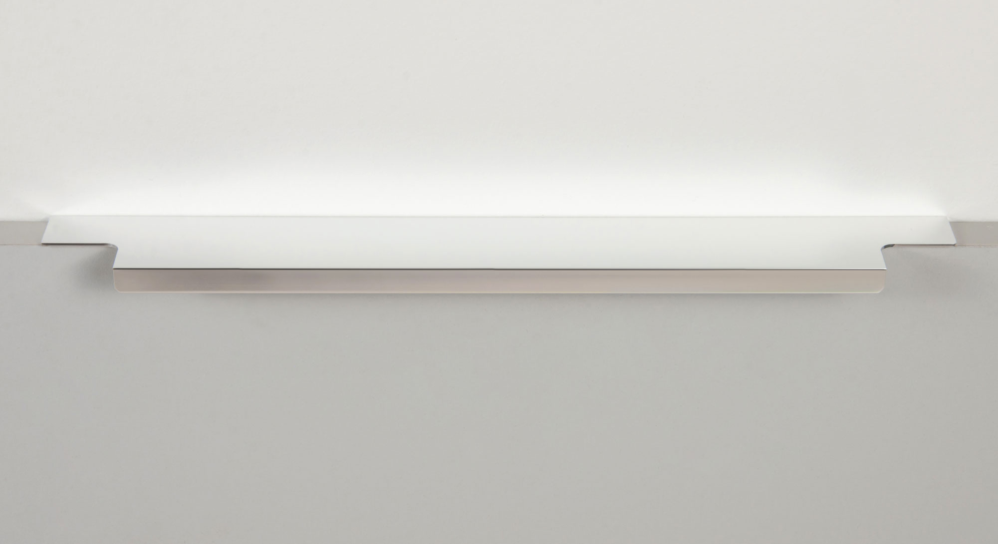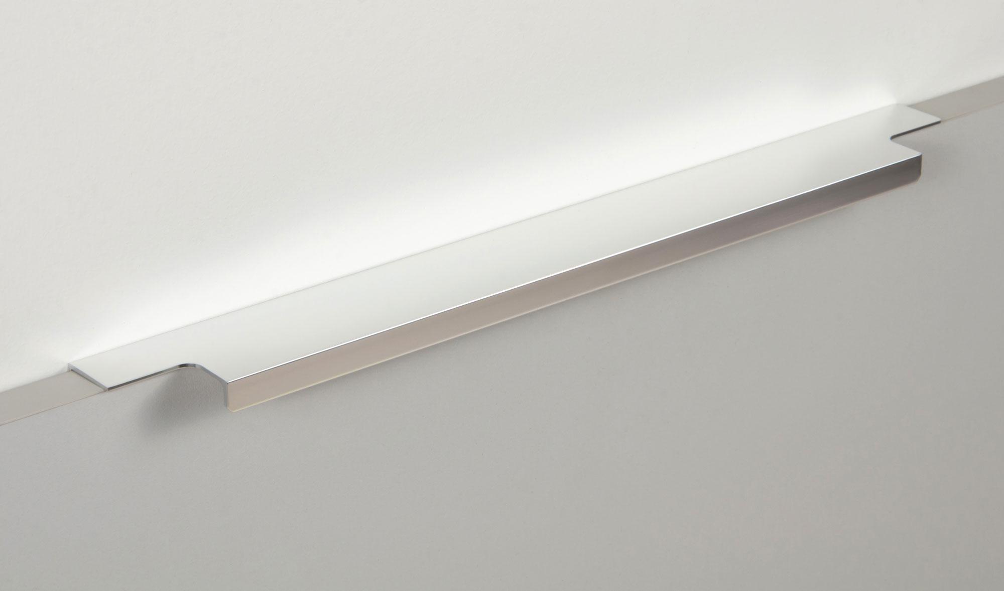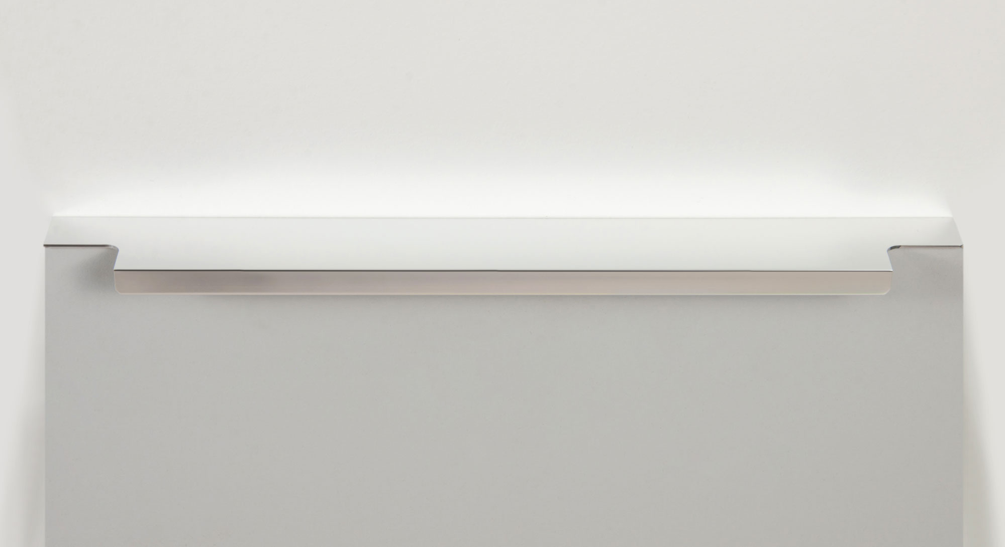 Ручка имеет богатую палитру цветовых решений и разнообразие длин. В зависимости от длины, модель допускает размещение двумя способами — «в размер» фасада и по центру широких фасадов (как большой «язычок»).