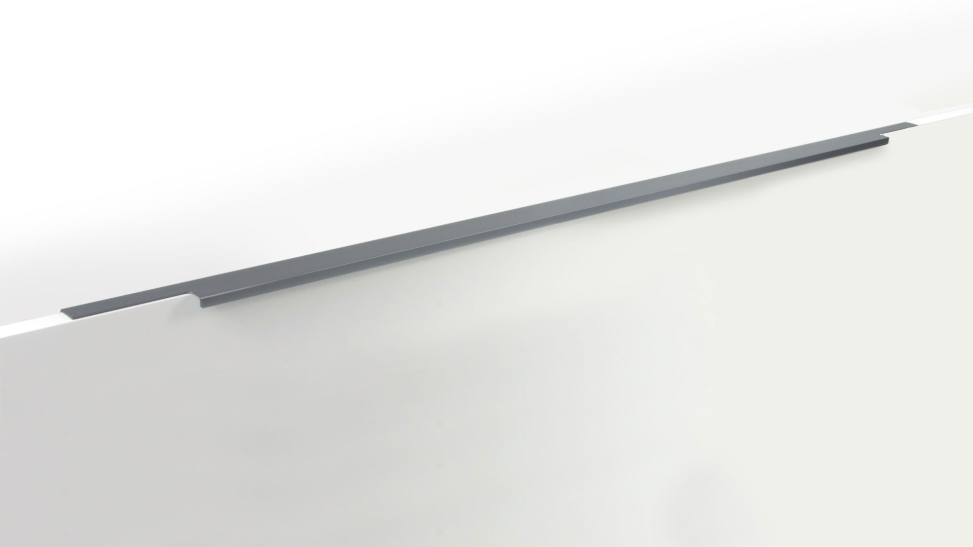 Ручка имеет богатую палитру цветовых решений и разнообразие длин. В зависимости от длины, модель допускает размещение двумя способами — «в размер» фасада и по центру широких фасадов (как большой «язычок»).