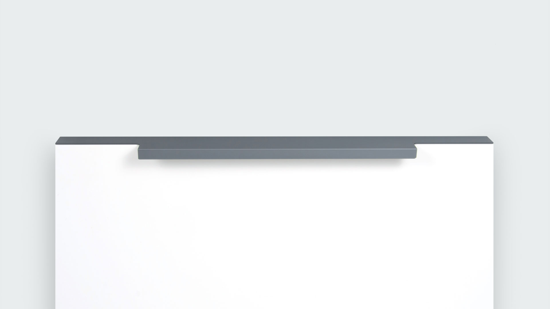Ручка имеет богатую палитру цветовых решений и разнообразие длин. В зависимости от длины, модель допускает размещение двумя способами — «в размер» фасада и по центру широких фасадов (как большой «язычок»).