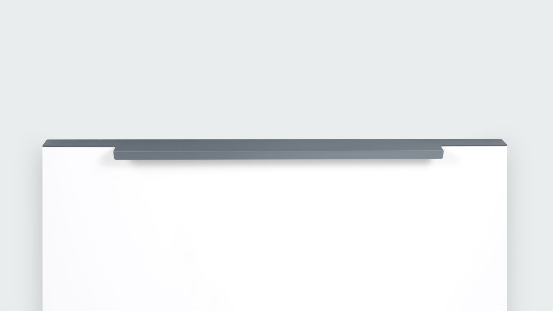 Ручка имеет богатую палитру цветовых решений и разнообразие длин. В зависимости от длины, модель допускает размещение двумя способами — «в размер» фасада и по центру широких фасадов (как большой «язычок»).