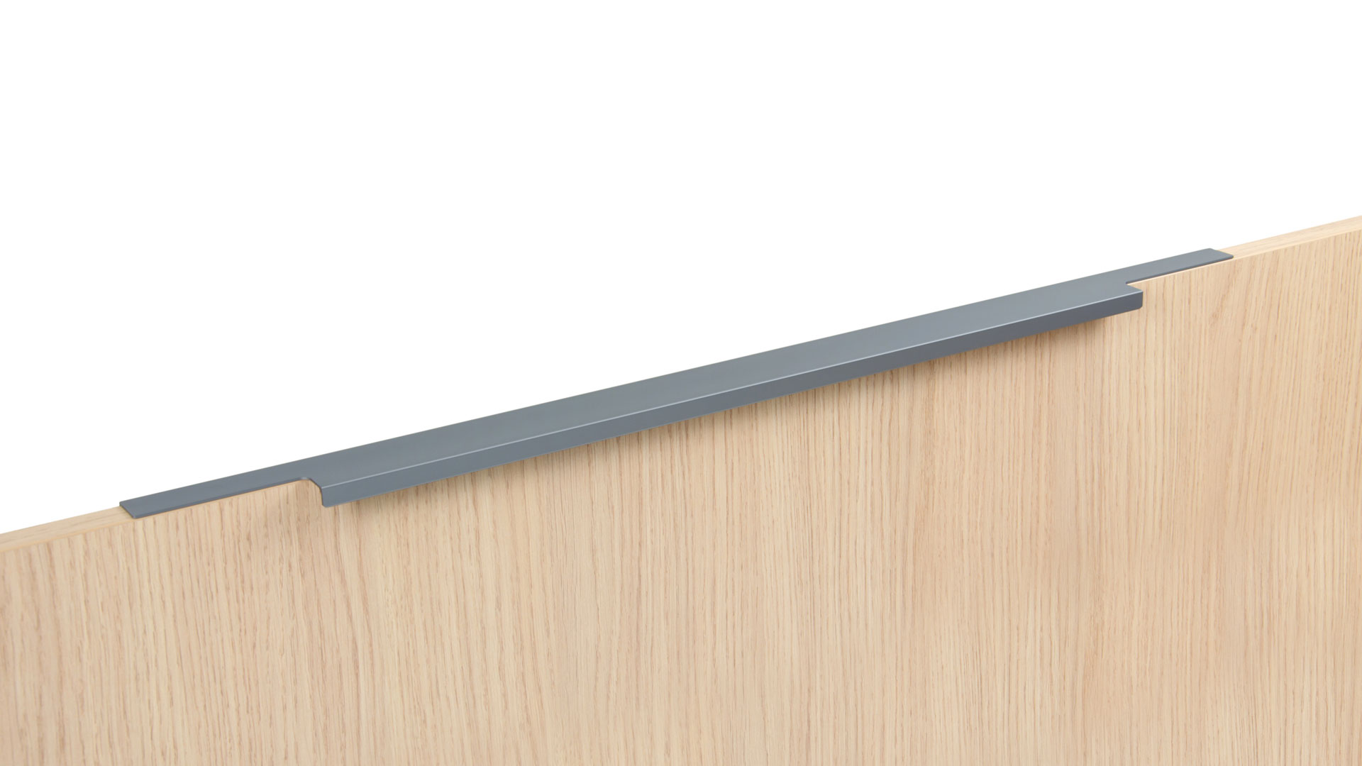 Ручка имеет богатую палитру цветовых решений и разнообразие длин. В зависимости от длины, модель допускает размещение двумя способами — «в размер» фасада и по центру широких фасадов (как большой «язычок»).