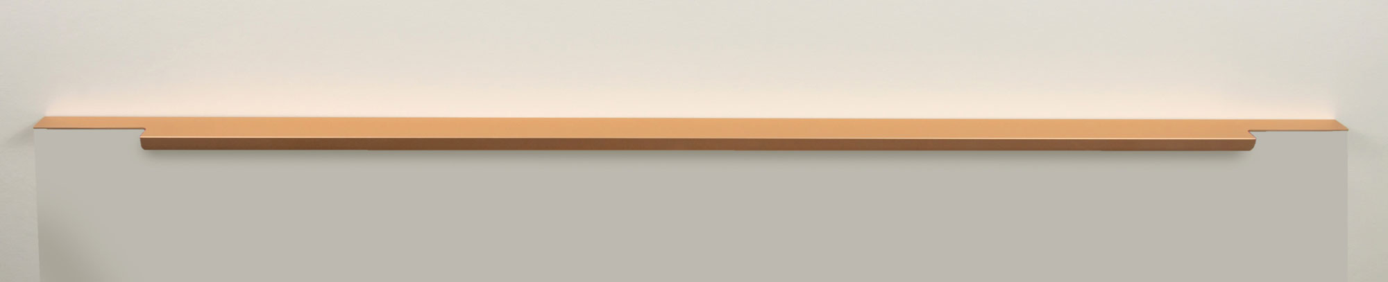 Ручка имеет богатую палитру цветовых решений и разнообразие длин. В зависимости от длины, модель допускает размещение двумя способами — «в размер» фасада и по центру широких фасадов (как большой «язычок»).