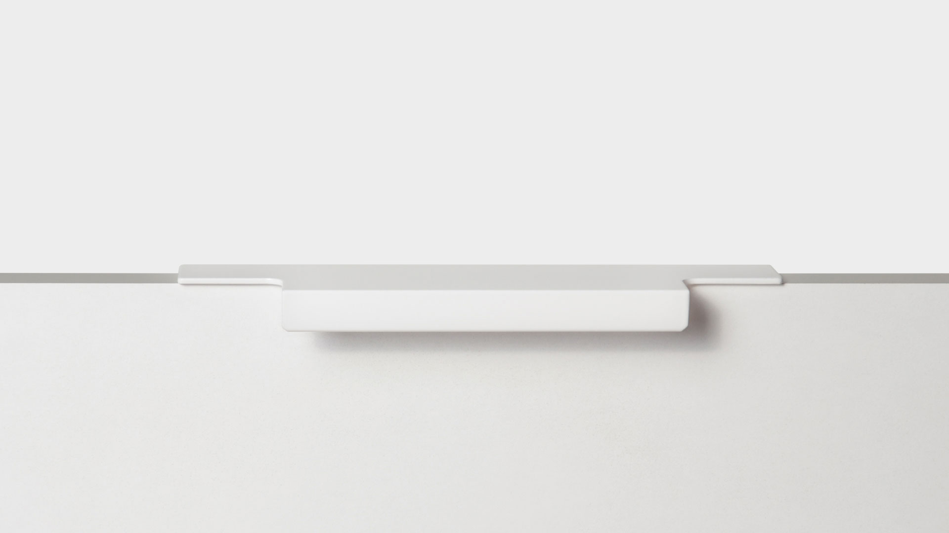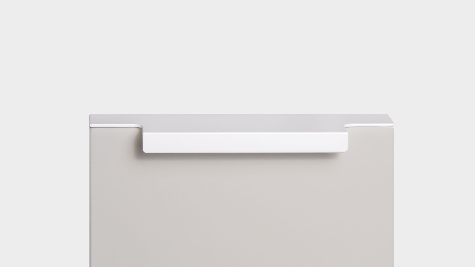 Ручка имеет богатую палитру цветовых решений и разнообразие длин. В зависимости от длины, модель допускает размещение двумя способами — «в размер» фасада и по центру широких фасадов (как большой «язычок»).