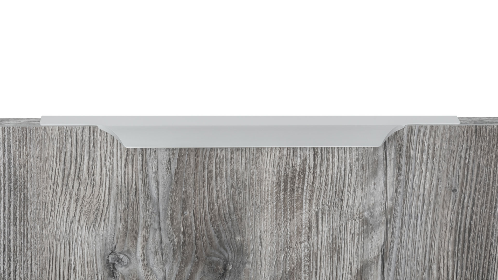 WING RT114 — торцевая ручка с изгибом из алюминия, устанавливается наложением на фасады толщиной 18,8 мм (в цветах BL,GR,SC,SG) и 18,5 мм (в цвете W).