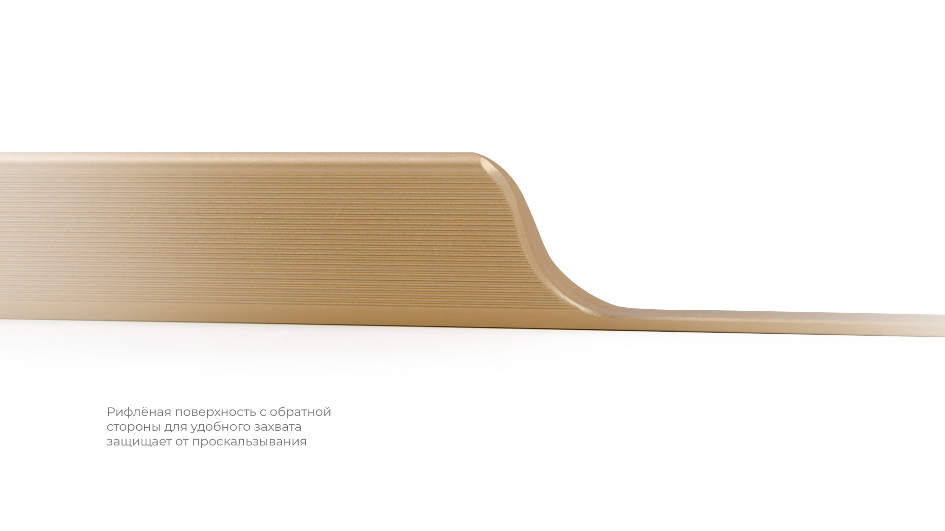 Модель выполнена в стильном дизайне и имеет рифлёное покрытие в зоне захвата для эргономичного использования ручки без соскальзывания. За счёт обтекаемой формы RT114 идеально ложится в ладонь. Дополнительный выступ в конструкции модели создаст эффект погружения фасада, аккуратно закрывая его края.