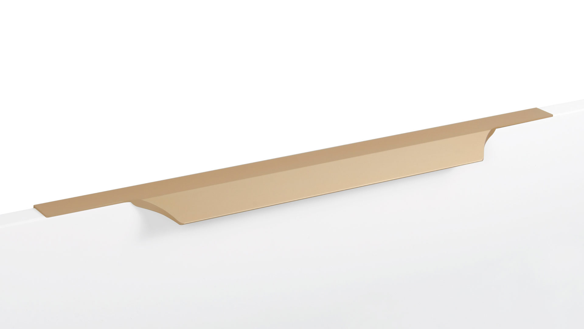 WING RT114 — торцевая ручка с изгибом из алюминия, устанавливается наложением на фасады толщиной 18,8 мм (в цветах BL,GR,SC,SG) и 18,5 мм (в цвете W).