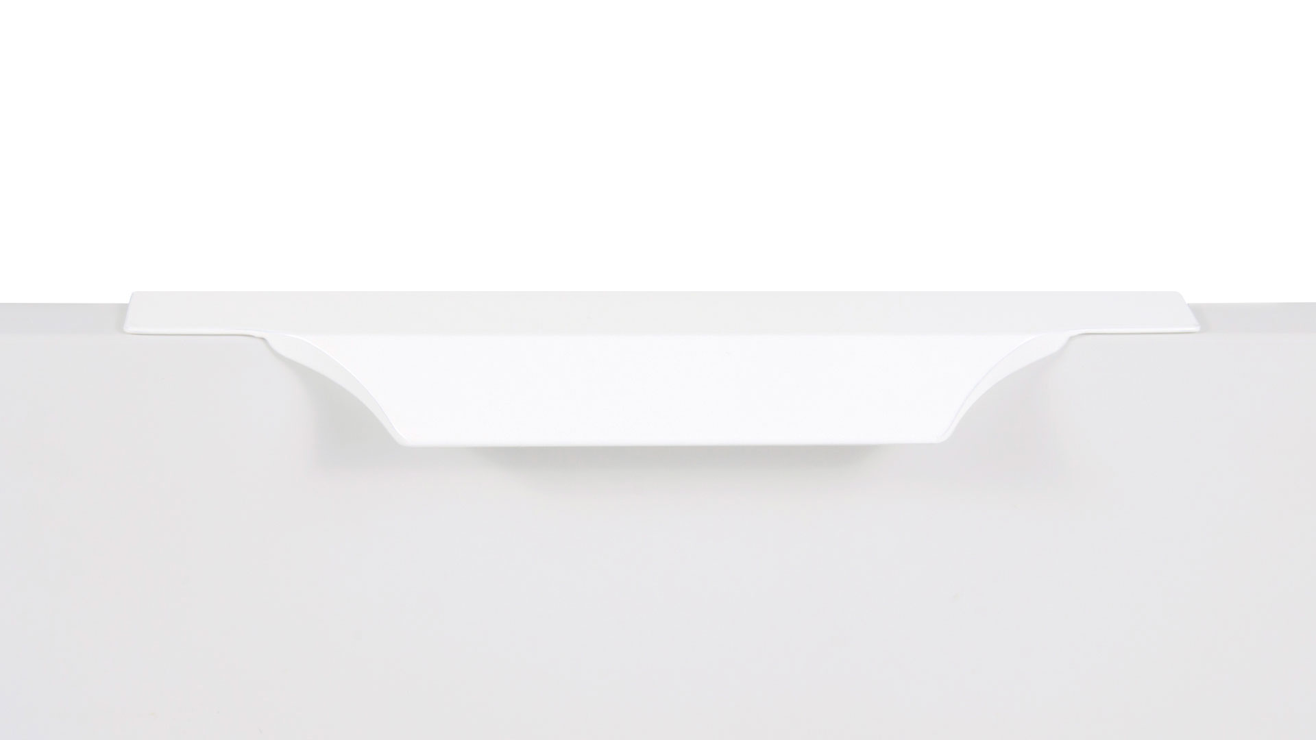 WING RT114 — торцевая ручка с изгибом из алюминия, устанавливается наложением на фасады толщиной 18,8 мм (в цветах BL,GR,SC,SG) и 18,5 мм (в цвете W).