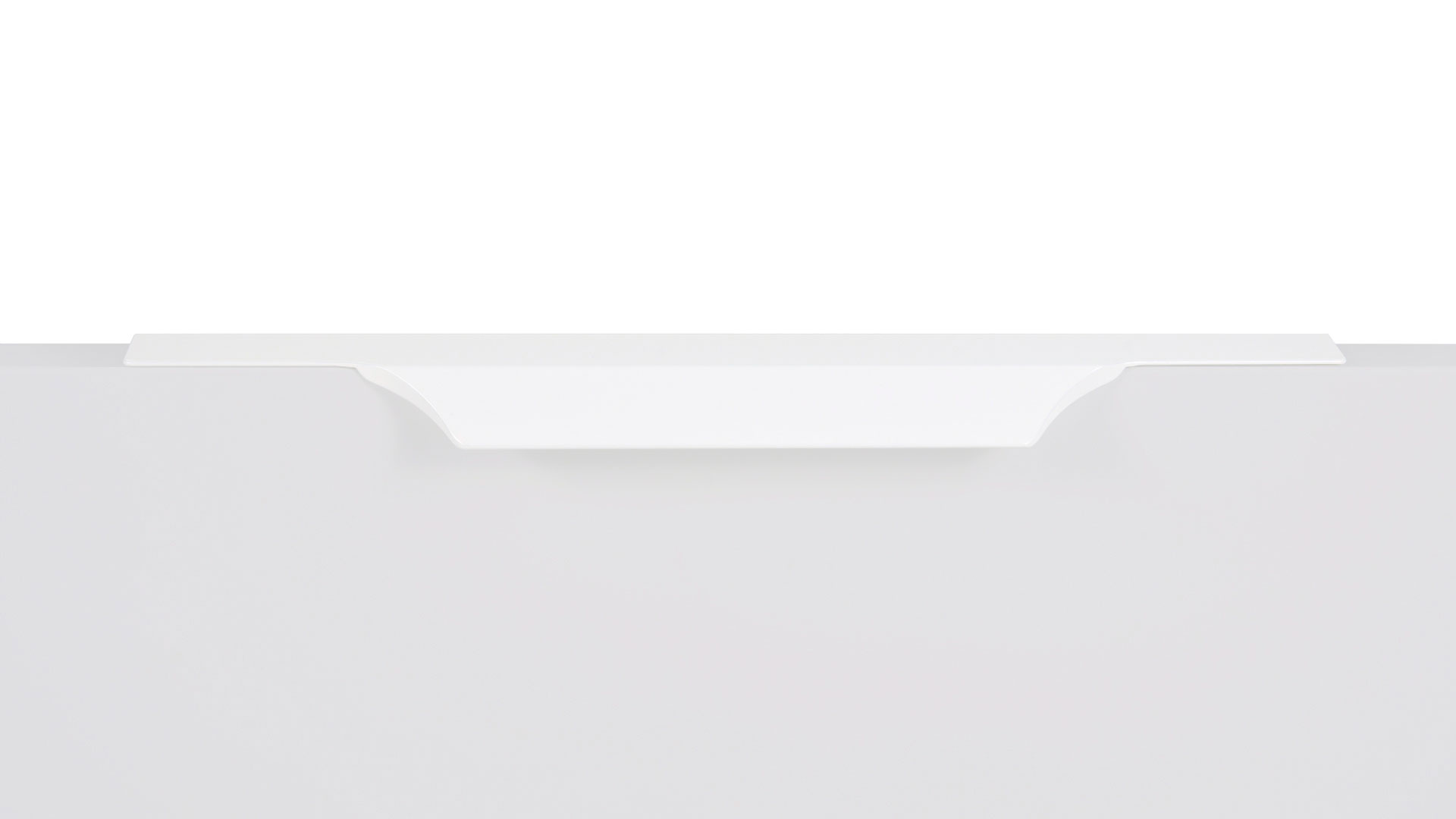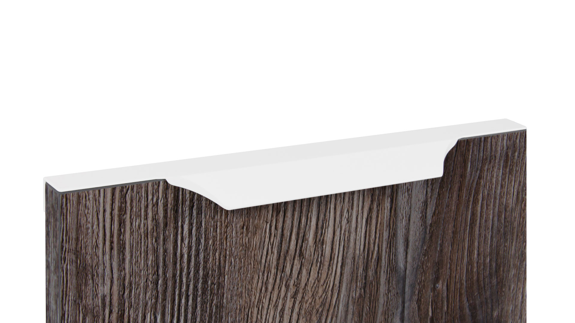 WING RT114 — торцевая ручка с изгибом из алюминия, устанавливается наложением на фасады толщиной 18,8 мм (в цветах BL,GR,SC,SG) и 18,5 мм (в цвете W).