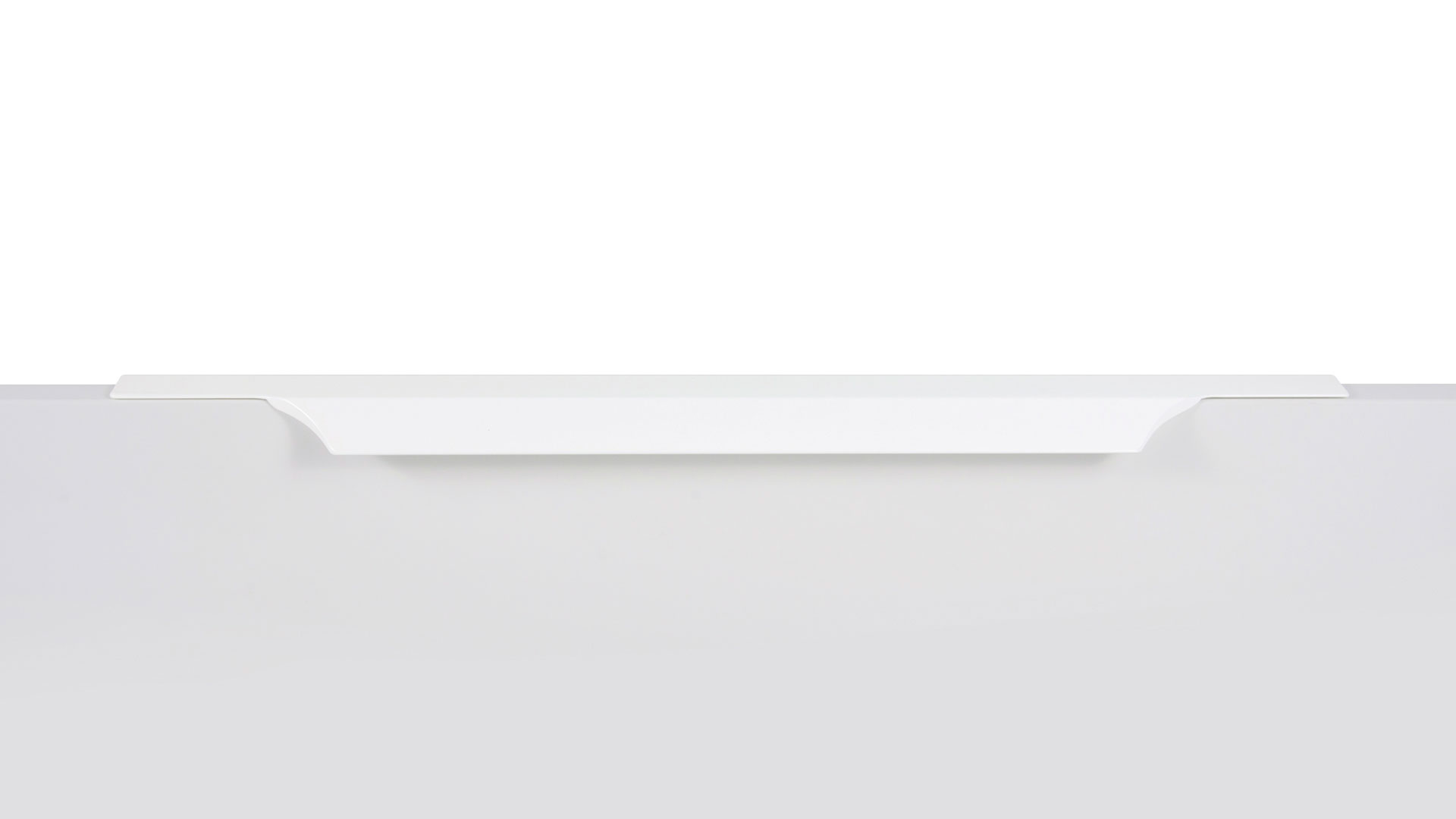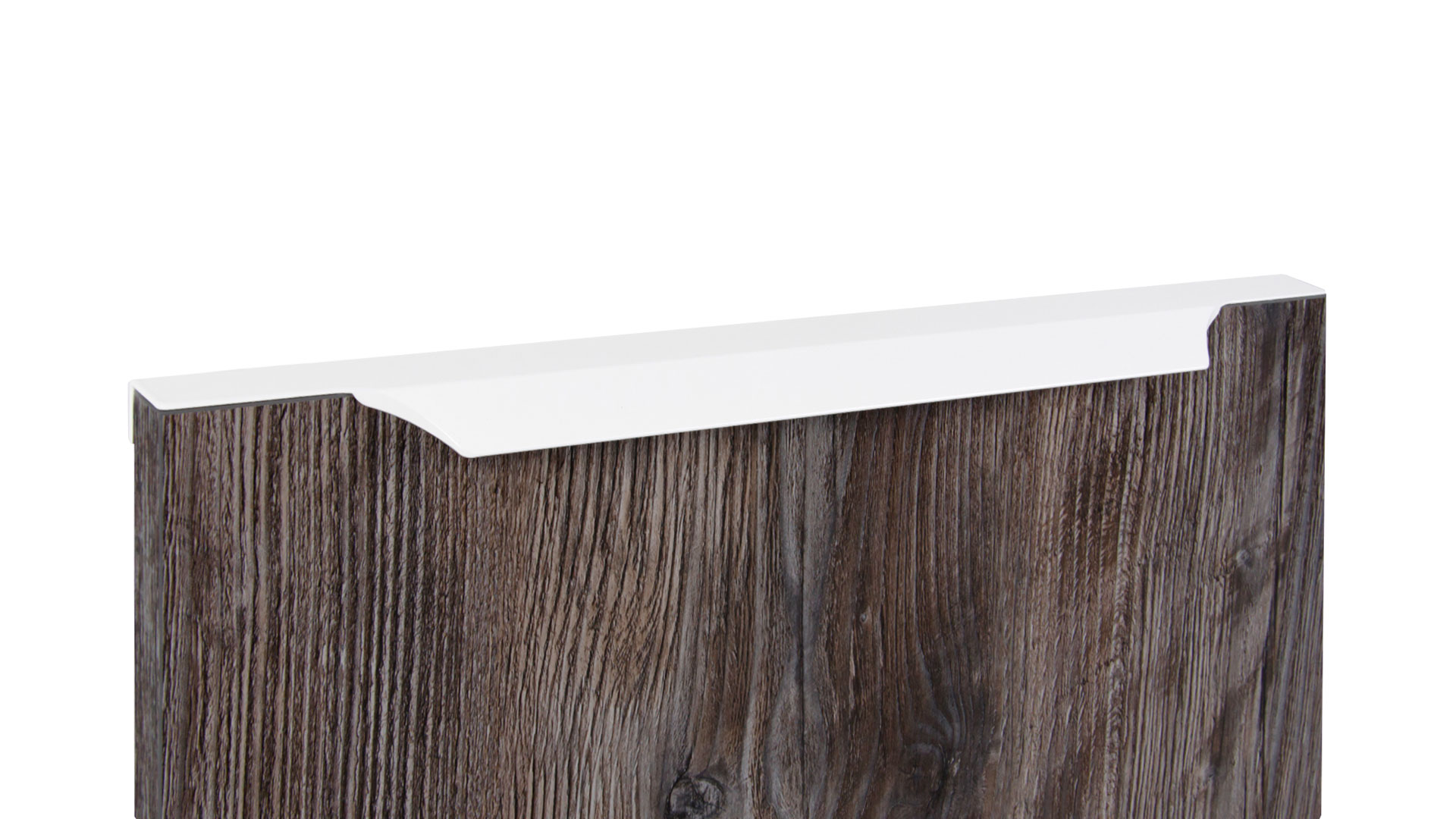 WING RT114 — торцевая ручка с изгибом из алюминия, устанавливается наложением на фасады толщиной 18,8 мм (в цветах BL,GR,SC,SG) и 18,5 мм (в цвете W).