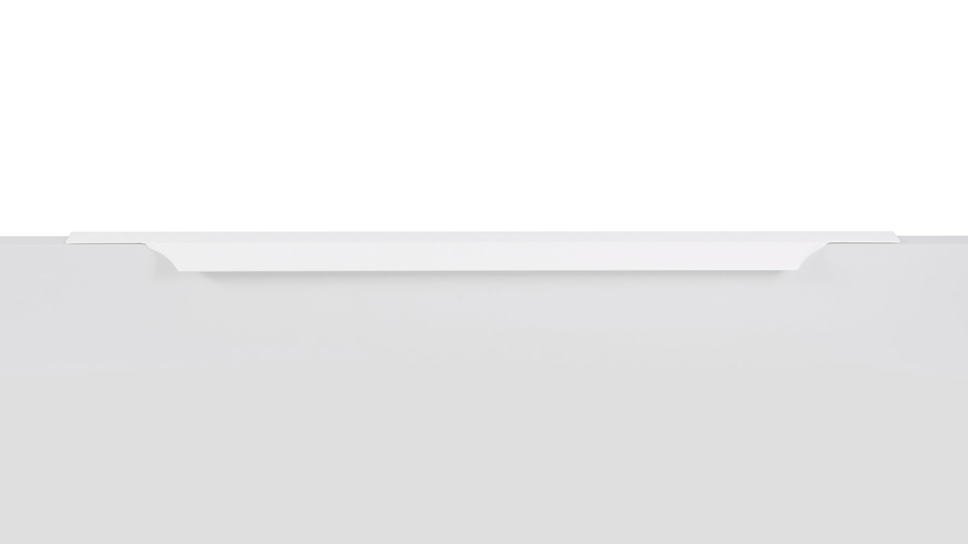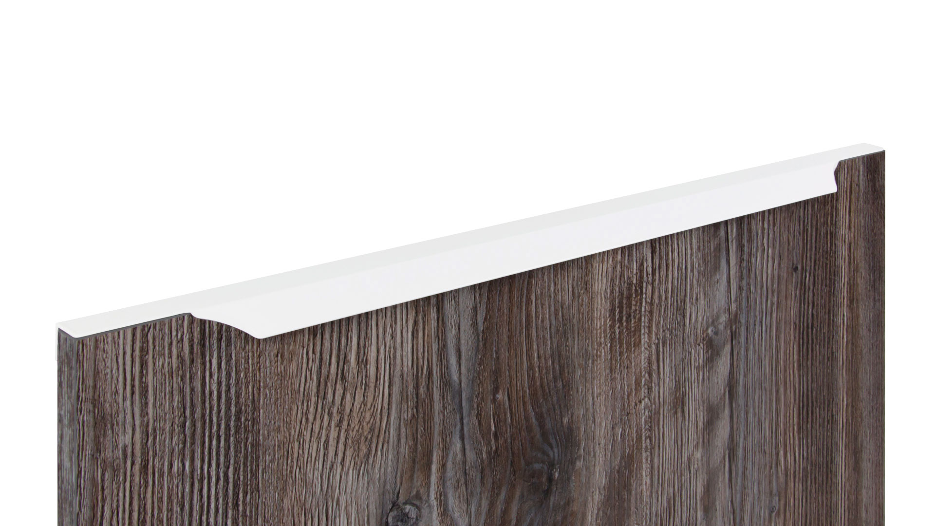 WING RT114 — торцевая ручка с изгибом из алюминия, устанавливается наложением на фасады толщиной 18,8 мм (в цветах BL,GR,SC,SG) и 18,5 мм (в цвете W).